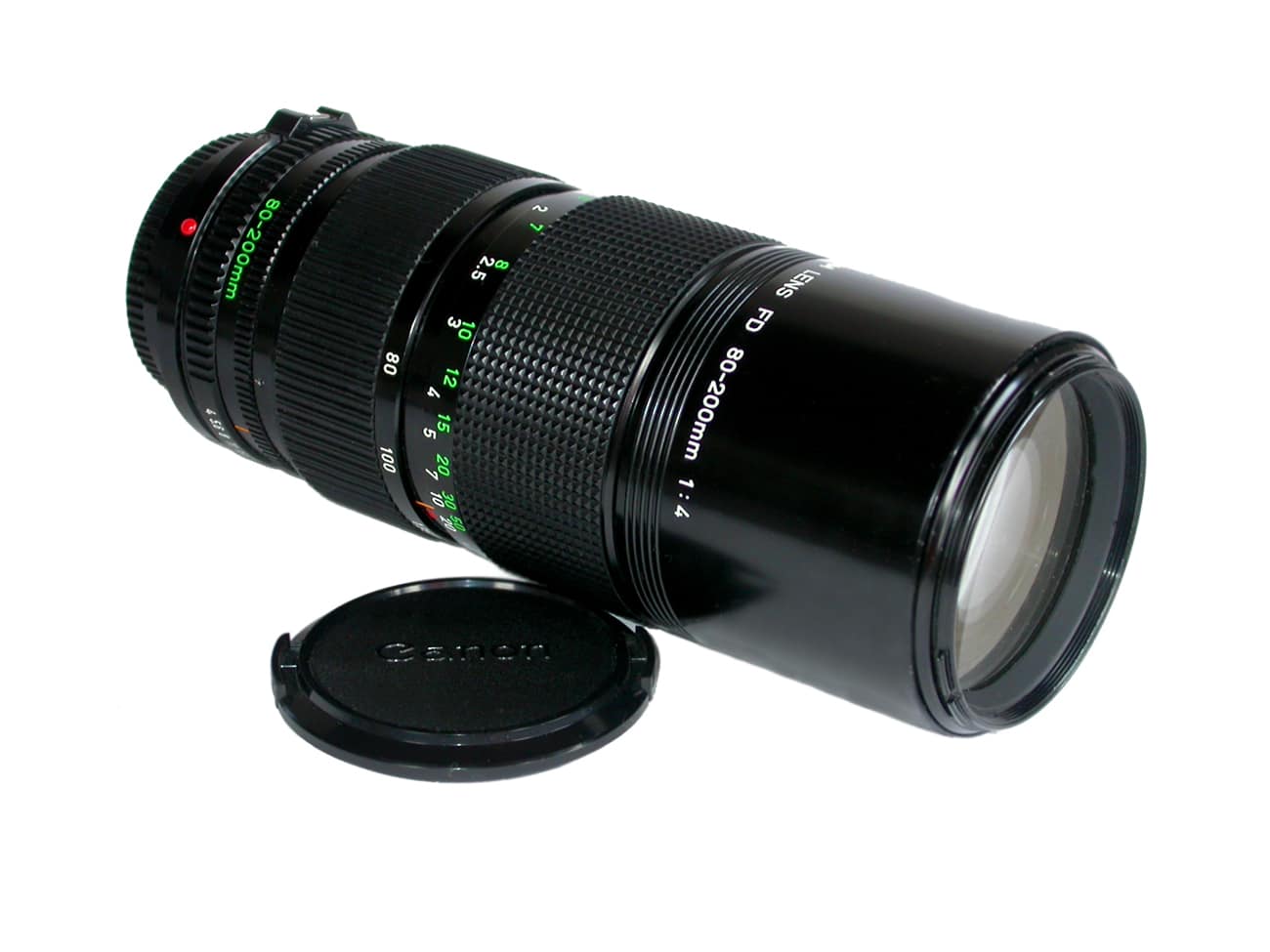 In den 1980er und 1990er Jahren ein begehrtes Prachtobjektiv. Heute kaum mehr etwas wert: ein lichtstarkes (1:4,0) Drehzoom mit einem Brennweitenbereich von 80 bis 200 Millimeter für das FD- oder FL-Bajonett. Canon-FD-Objektive gibt es in zwei Versionen. Die ältere besitzt einen silberfarbenen geriffelten Überwurfring, der um eine Achtel- oder Viertelumdrehung bewegt werden muss, um das Objektiv an der Kamera zu befestigen. Bei der neueren Version (FD new – siehe Foto) fehlt der Überwurfring. Hier muss das Objektiv gedreht werden, um es im Kamerabajonett zu fixieren. Naheinstellgrenze: einen Meter.