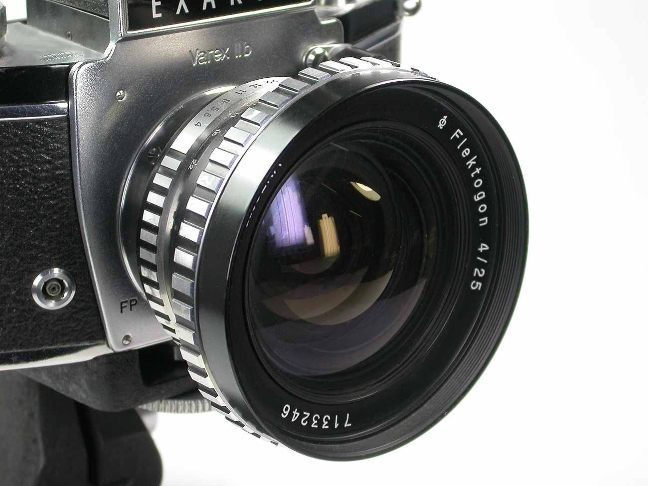 Starkes Weitwinkelobjektiv „aus Jena“ für alle Ihagee Exakta- und Exa-Kameras mit Bajonettanschluss sowie Topcon-Kameras mit Exakta-Bajonett. Manuelle Schärfeeinstellung, kleinste Blende: 22, Bildwinkel: 51,3° (kurze Seite), 71,5° (lange Seite), 81,7° (Diagonale), 7 Elemente, Filterdurchmesser: 77 mm. 82 mm Durchmesser, 62,3 mm Länge. Gewicht: 300 Gramm. Hier an einer Exakta IIb.