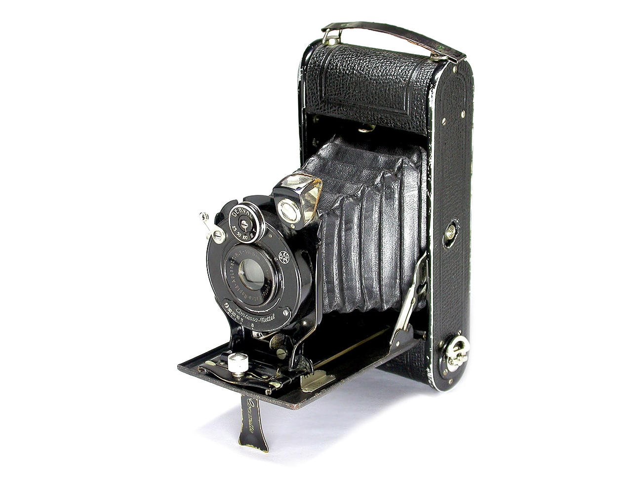 Eine Laufbodenkamera aus Stuttgart mit U-Rahmen und Brillantsucher für Rollfilm, die es ab 1920 in vielen verschiedenen Variationen gab. Dieses Modell hier (Rollfilm 120/Negativformat: nominal 6 x 9 cm) stammt wohl aus dem Jahre 1922 wie die meisten ähnlichen Modelle. Das Gehäuse besteht aus Aluminium und weist eine schwarze Kunststoffbelederung auf. Außergewöhnlich am abgebildeten Modell: Das Objektiv Contessa-Nettel Extra-Rapid-Aplanat mit Lichtstärke 1:8 und einer Brennweite von 105 mm (die meisten Cocaretten hatten lichtstärkere Objektive, Kadlubek verzeichnet dieses Objektiv überhaupt nicht). Verschluss: Derval mit B, T und 1/25 bis 1/100 Sekunde.