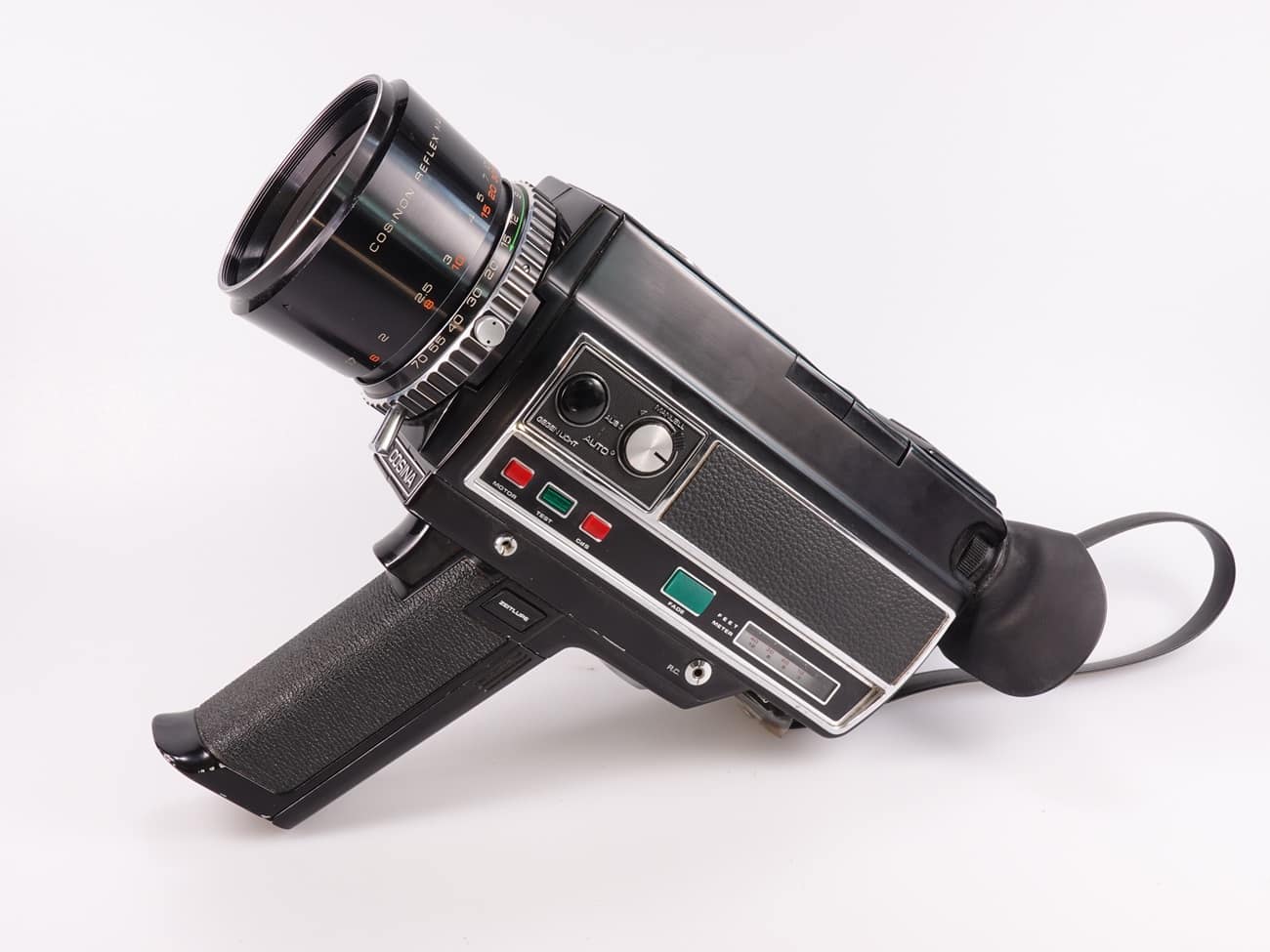 Schmalfilmkamera für Super-8-Kassetten, hergestellt in Japan von 1970 bis 1972. Objektiv: Cosinon Reflex Macro Lens 1:1,7/7-70 mm, Seriennummer 761969; manuelle Fokussierung, Brennweitenverstellung motorisch und manuell. Reflexsucher. Elektrischer Filmtransport (Einzelbild; 18, 24 und 40 Bilder pro Sekunde); TTL-Belichtungsmessung (CdS), automatische oder manuelle Belichtungssteuerung. Tageslichtfilter zuschaltbar. Gegenlichtkorrekturtaste; Fade; Batteriekontrollleuchten für Motor und Belichtungsmesser. Handschlaufe.