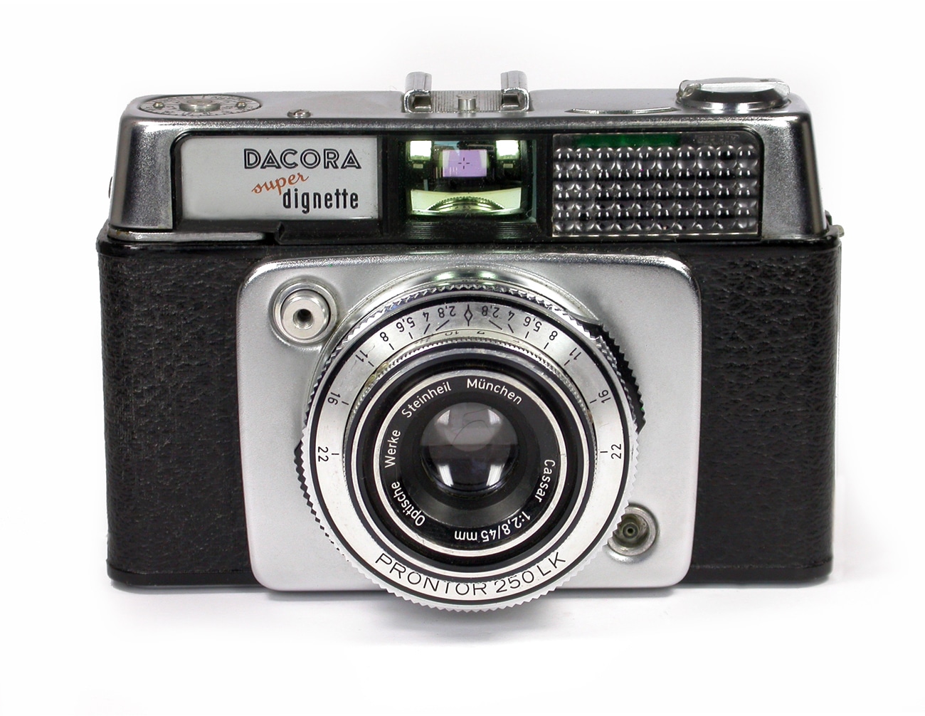 Sucherkamera für den Kleinbildfilm 135 (Aufnahmeformat 24 x 36 mm), hergestellt ab 1962. Objektiv: Steinheil München Cassar 1:2,8/45 mm, vergütet; optischer Großbildsucher mit Bildfeldbegrenzung und Mittenmarkierung; Verschluss: Prontor 250 LK (B, 1/30 bis 1/250 Sekunde). Mit eingebautem, gekuppeltem Lichtwertmesser mit Nachführzeiger (Integralmessung), Tiefenschärfenskala, Schnellaufzug, Doppelbelichtungs- und Leerschaltsperre, Filmmerkscheibe, modifizierter Rückspulkurbel und Blitzsynchronisation.