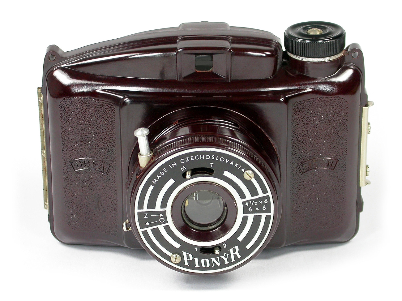 Seltene Sucherkamera für den Rollfilm 120/620/B2 (Aufnahmeformat 6 x 6 cm und 6 x 4,5 cm) im Art-déco-Stil. Rotes Bakelitgehäuse (es gibt Versionen in schwarz und rot; die schwarze ist die häufigere Ausführung), Einfachverschluss (B und Moment), zwei Blenden, manuelle Belichtungssteuerung. Der Auslöser ist gegen versehentliche Auslösung gesichert. Der Objektivtubus lässt sich durch Drehen im Kamerabody versenken. Bei dieser Kamera handelt es sich um die tschechische Kopie der französischen Photax, nur dass das Original für den 620er Rollfilm mit einem Format von 6 x 9 cm konstruiert ist. Die Produktion begann 1940, 1948 oder 1950 – hier differieren die Angaben in den verschiedenen Quellen. Es gab aber auch verschiedene Versionen der Gestaltung des Objektivs.
