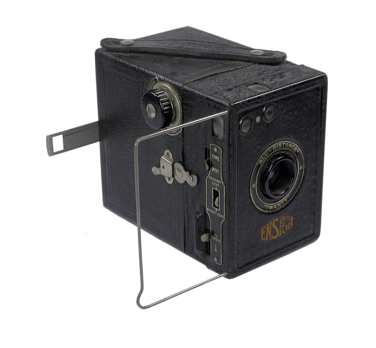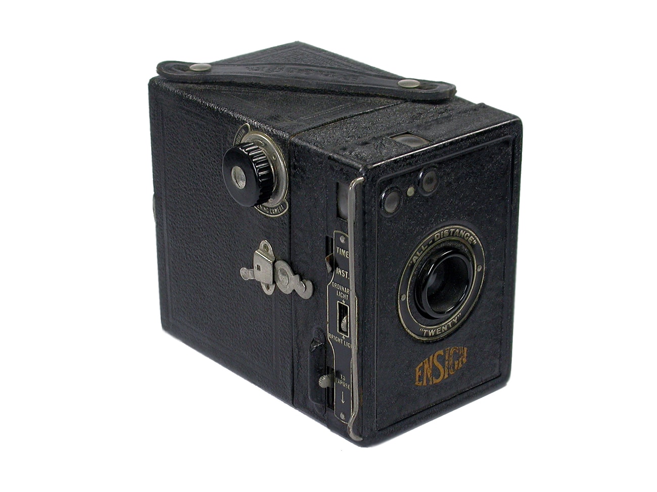 Interessante Boxkamera für den Rollfilm 120/620/B 2 (Aufnahmeformat 6 x 9 cm), hergestellt vermutlich in den späten 1920er Jahren bei Houghton (Firmenbezeichnung: ab 1867 Houghton & Son, London, ab 1904 Houghton Ltd., von 1926 bis 1961 Houghton & Butcher). Fixfokusobjektiv, wahrscheinlich eine Meniskuslinse. Zwei Brillant-Sucher und ausziehbarer Rahmensucher. Einfachverschluss (B und Moment); manuelle Belichtungssteuerung. Das Museumsexemplar ist erstaunlich gut erhalten.