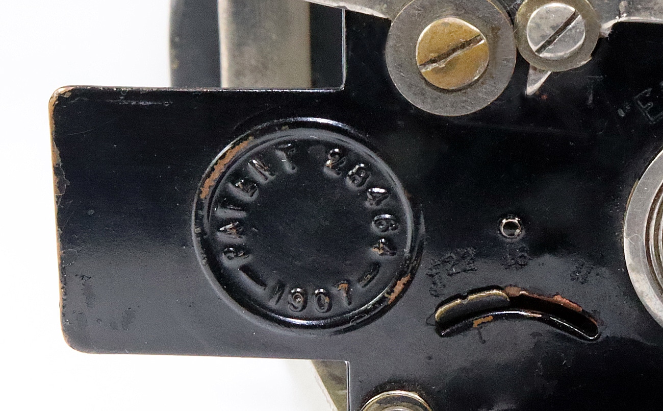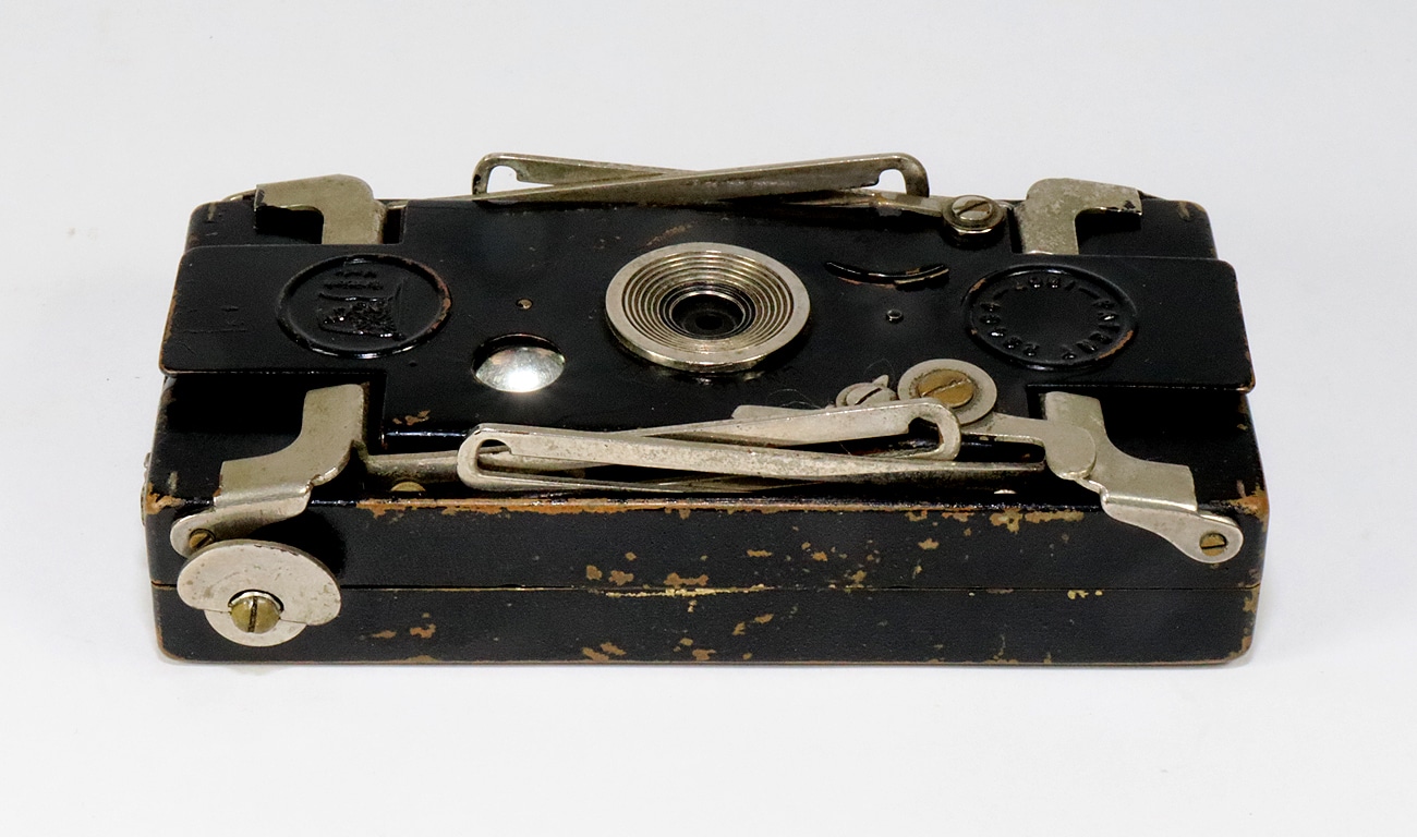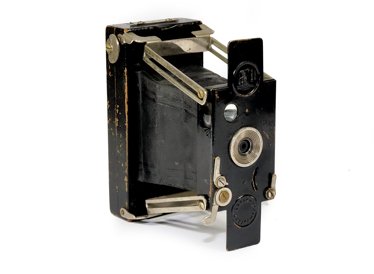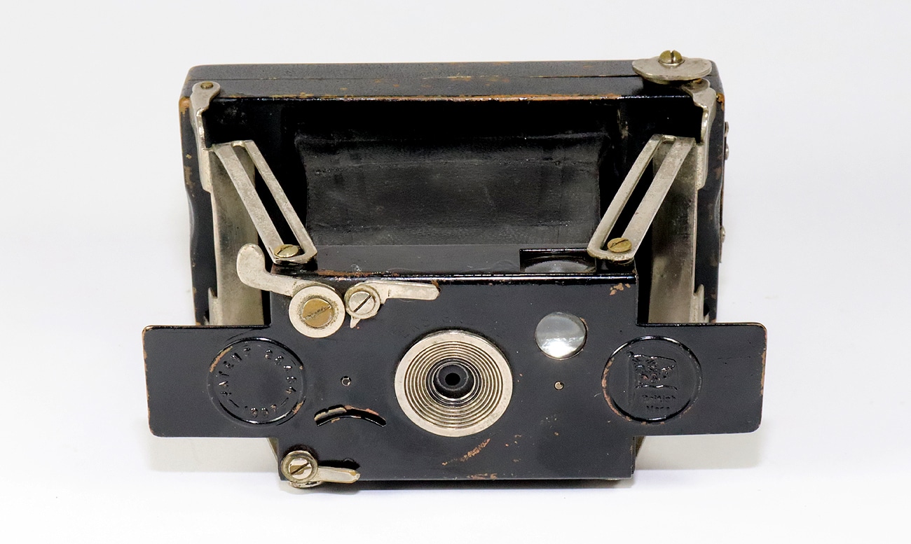 Fixfokus, Einfachverschluss, manuelle Belichtungssteuerung, Brillantsucher nur für Querformat. Blendenverstellung bis 22, Balgen aus dünnem Leder. Diese 1907 patentierte Kamera gab es auch 1912 in der heute sehr seltenen vergoldeten Ausführung. Die Endlaschen der Frontplatte des frühen Modells Nr. 1 sind schlicht gestaltet. Ab etwa 1911 wird ein geprägtes Flaggenlogo auf der rechten Registerkarte und Patentdetails auf der linken Registerkarte hinzugefügt. Demnach ist das Museumsmodell nach 1911 gebaut worden.