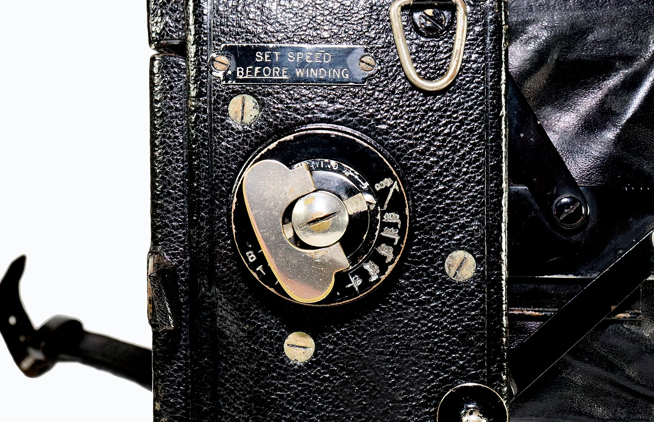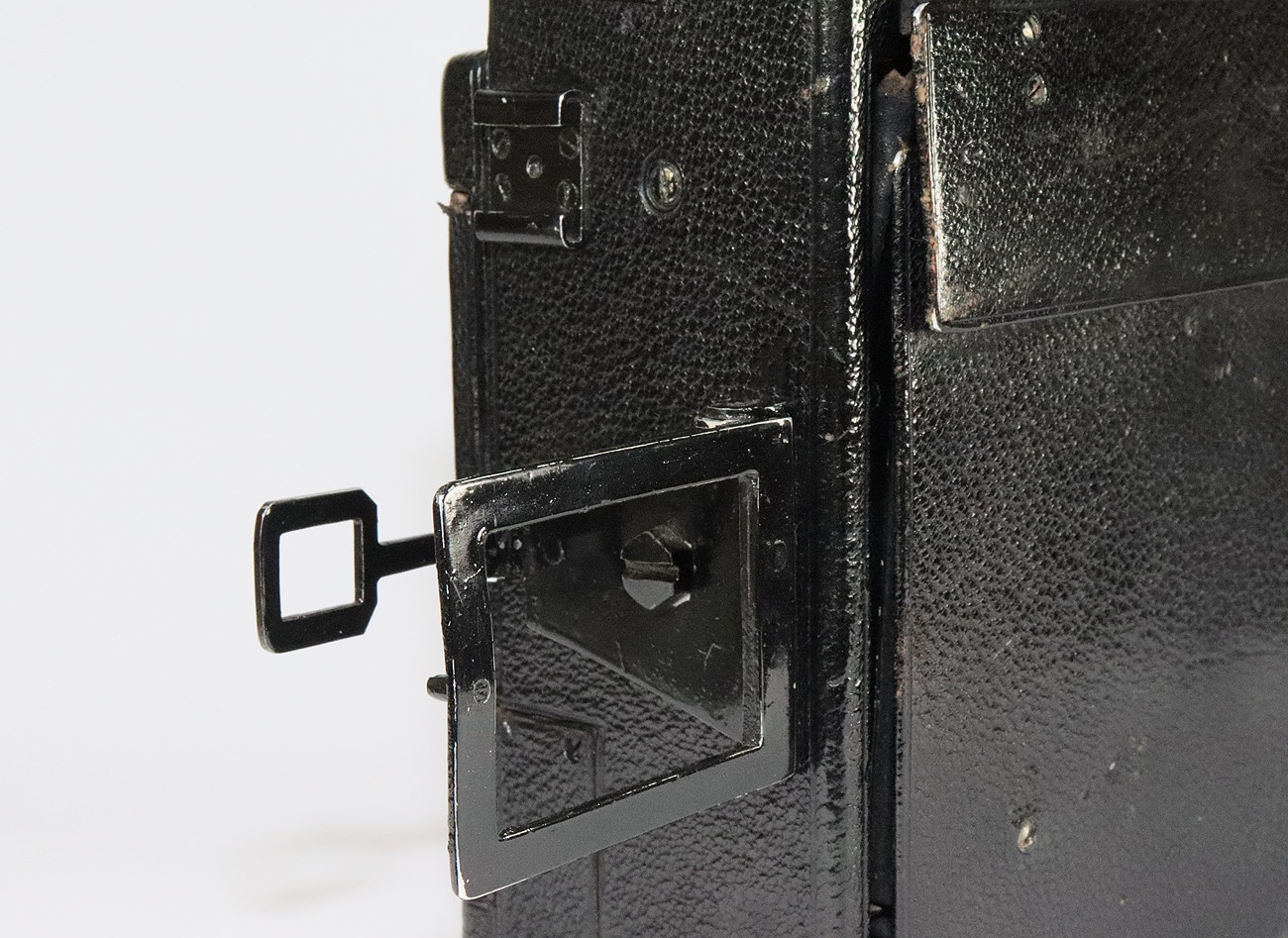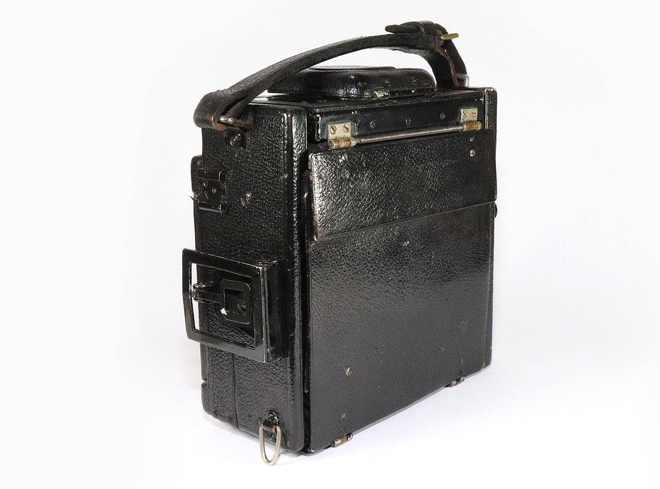Objektivausstattung: Wechselbare Objektive (Schraubgewinde), im Museumsobjekt ist es ein Cooke Aviar Series II mit etwa 13,5 cm Brennweite und einer Lichtstärke von 1:4,5 des britischen Herstellers Taylor, Taylor & Hobson Ltd. (T. T. & H.), Seriennummer 75464, Patent von 1918. Es gab Objektive verschiedener Brennweiten und Lichtstärke, darunter sogar ein Zeiss Tessar. Der ebenfalls patentierte Verschluss wurde auch vom britischen Hersteller Thornton-Pickard verwendet, der ähnliche Kameras baute. Objektivplatte nach links und rechts aus der optischen Achse verschiebbar und dann arretierbar.