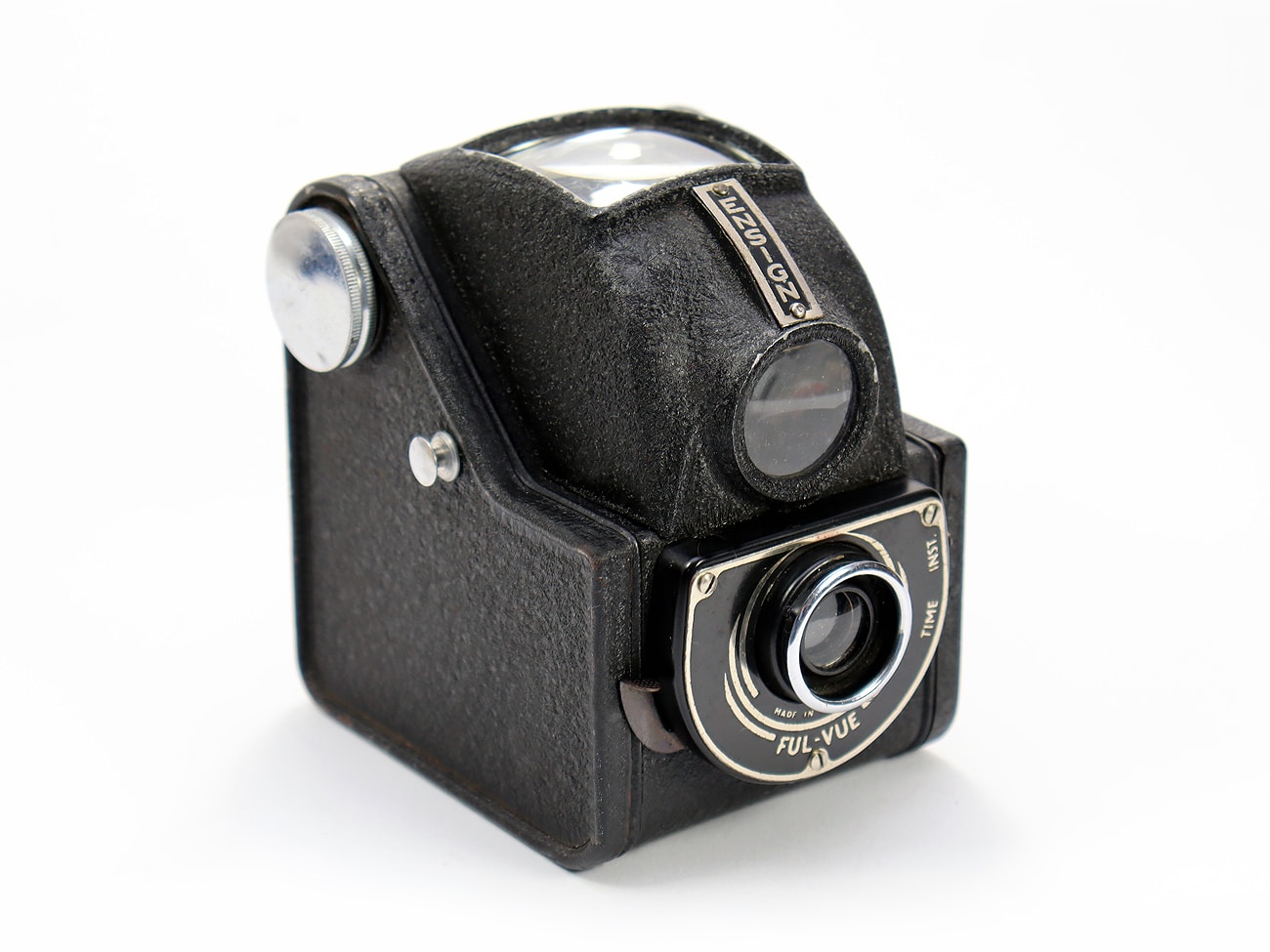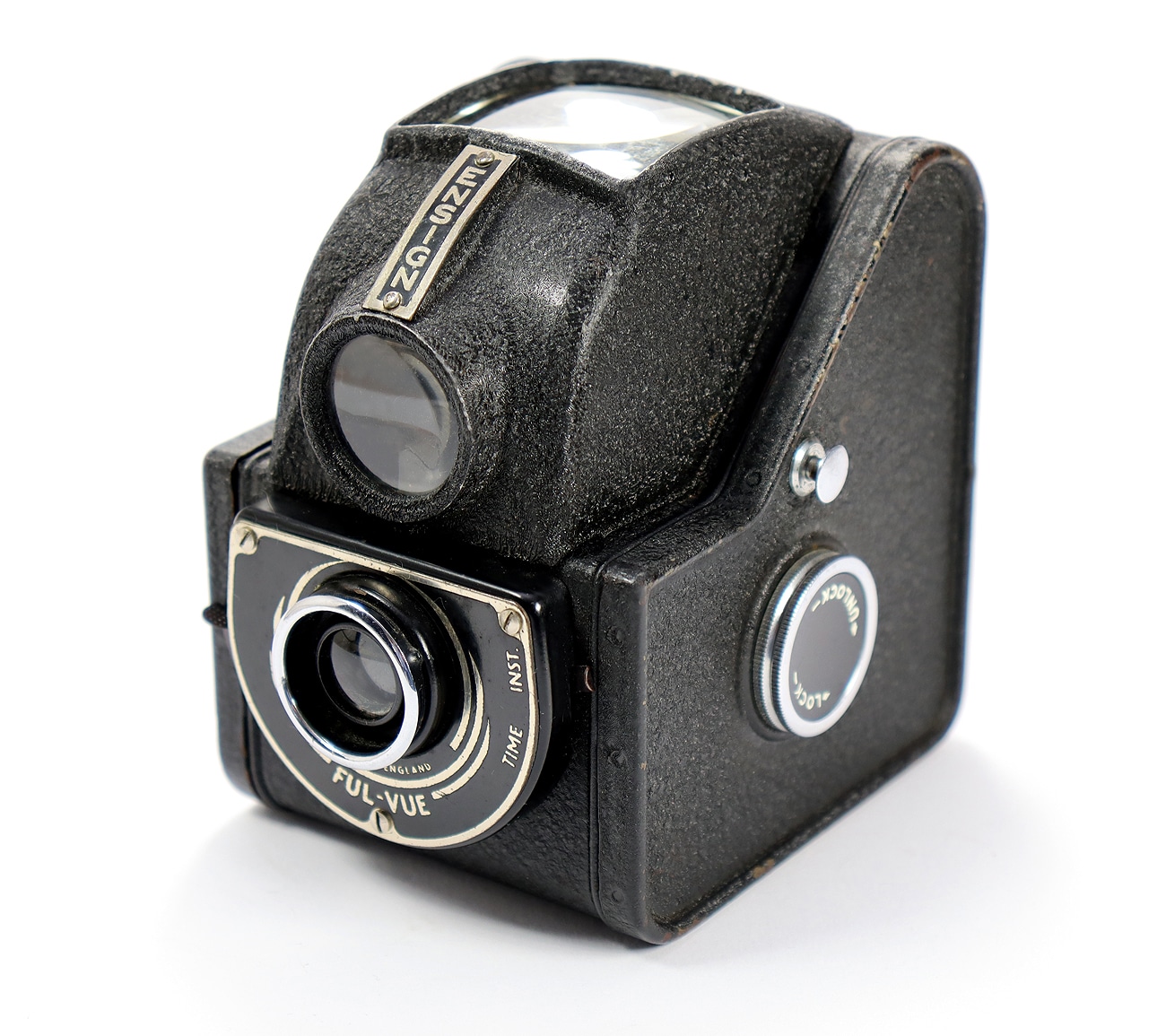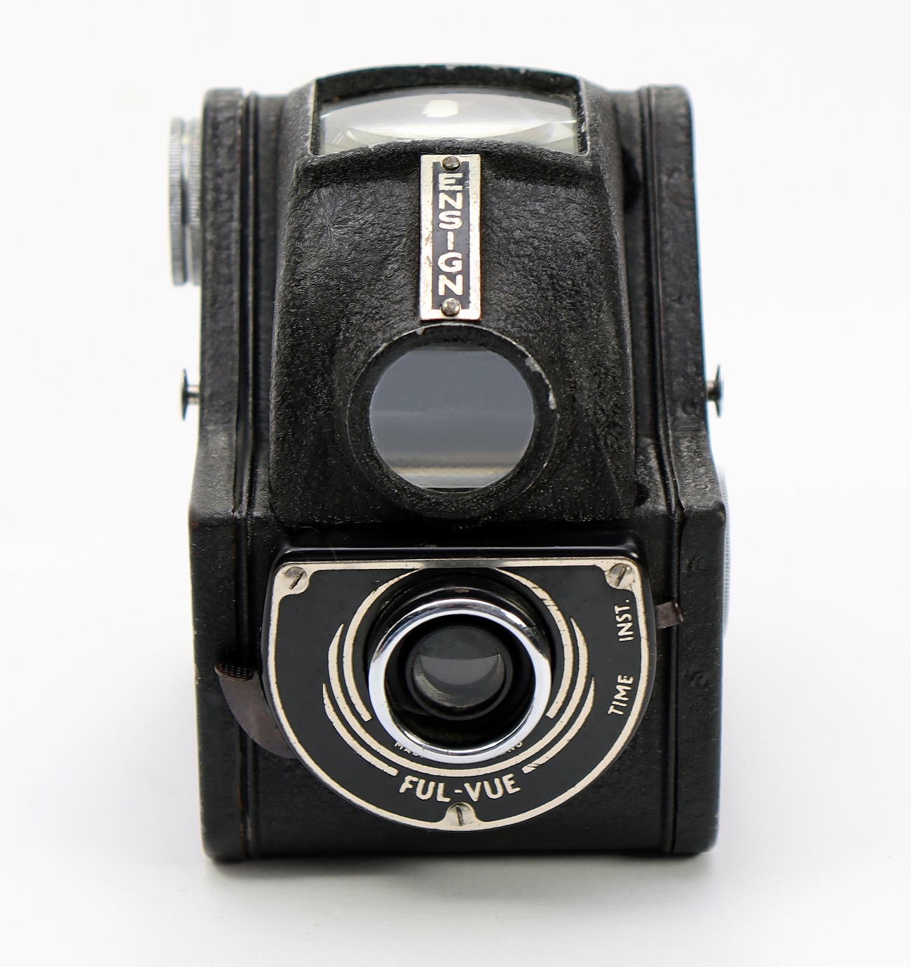 Metall-Box aus England für den Rollfilm 120/620/B 2 (Aufnahmeformat: 6 x 6 cm), hergestellt ab 1946 bei Houghton (gegründet 1867 als Houghton & Son, London, ab 1904 Houghton Ltd., von 1926 bis 1961 Houghton & Butcher). Fixfokus-Objektiv. Auffällig großer Brillantsucher. Einfachverschluss, manuelle Belichtungssteuerung. Massives Blechgehäuse. Seitliche Knöpfe zur Anbringung eines Umhängeriemens.
