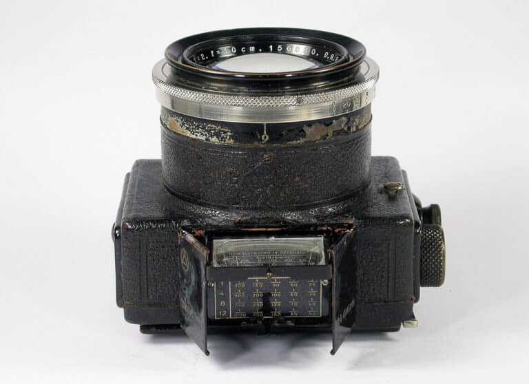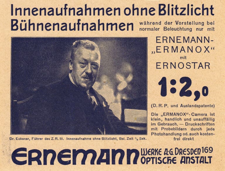 Ein Schmuckstück in der Sammlung Kurt Tauber im Deutschen Kameramuseum in Plech: die legendäre Ermanox in einer frühen Ausführung (1924) in respektablem Zustand. Sucherkamera (1924-1927) für Platten und Filmpacks 4,5 X 6, cm, 6,5 x 9 cm oder 9 X 12 cm Negativformat. Im Museum befindet sich die Ausführung mit 4,5 x 6 cm Bildformat.