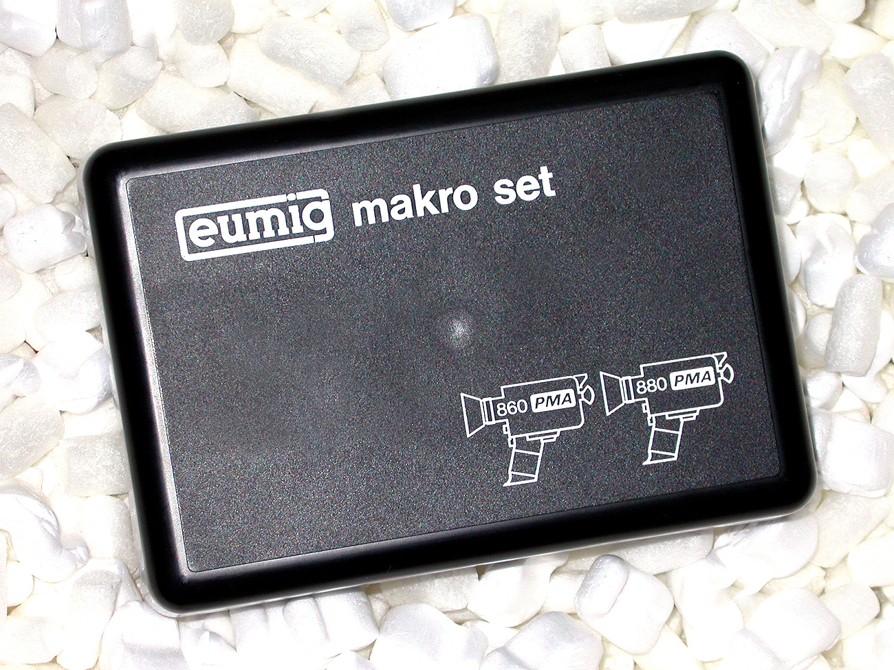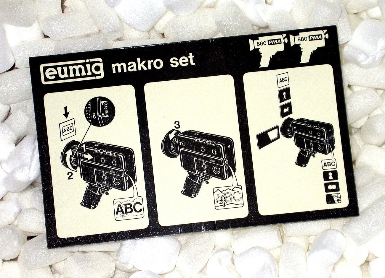 Titelgerät für die Super-8-Kameras 860 und 880 PMA von Eumig, Österreich, 1970er Jahre. Wird per Adapterring am Objektiv der Filmkameras befestigt.