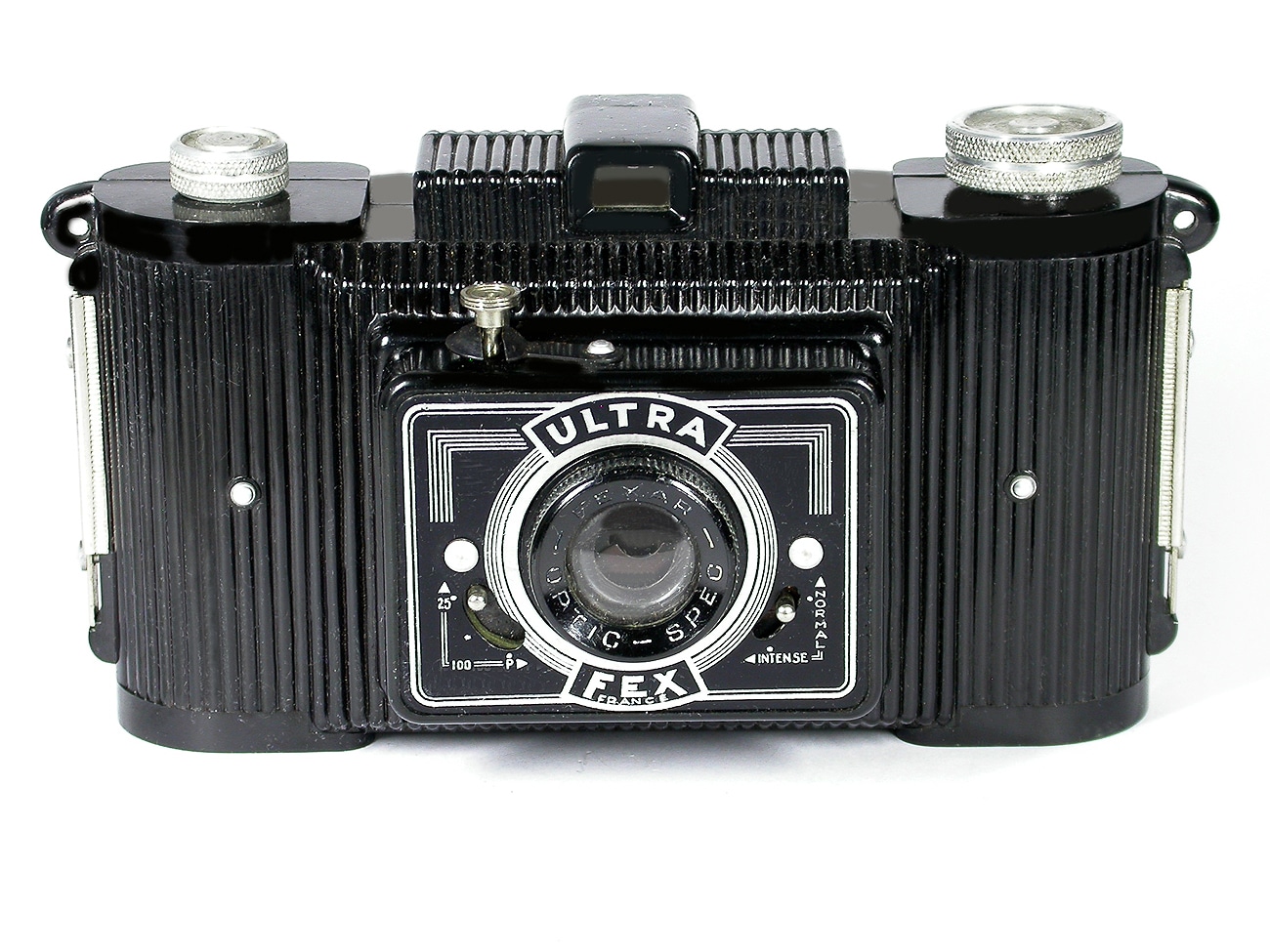 Sucherkamera für den Rollfilm 620 (Aufnahmeformat nominell 6 x 9 cm – faktisch etwa 5,5 x 8 cm), hergestellt 1946 und 1947 bei Fex Indo in Lyon, Frankreich. Objektivbeschriftung: Fexar – Optic – Spec., Fixfokus. Fernrohrsucher. Zentralverschluss (B, 1/25 und 1/100 Sekunde), manuelle Belichtungssteuerung, zwei Blenden („Intense“, „Normal“); Bakelitgehäuse.