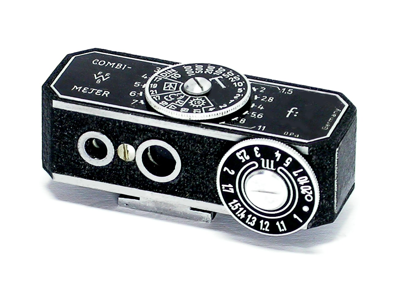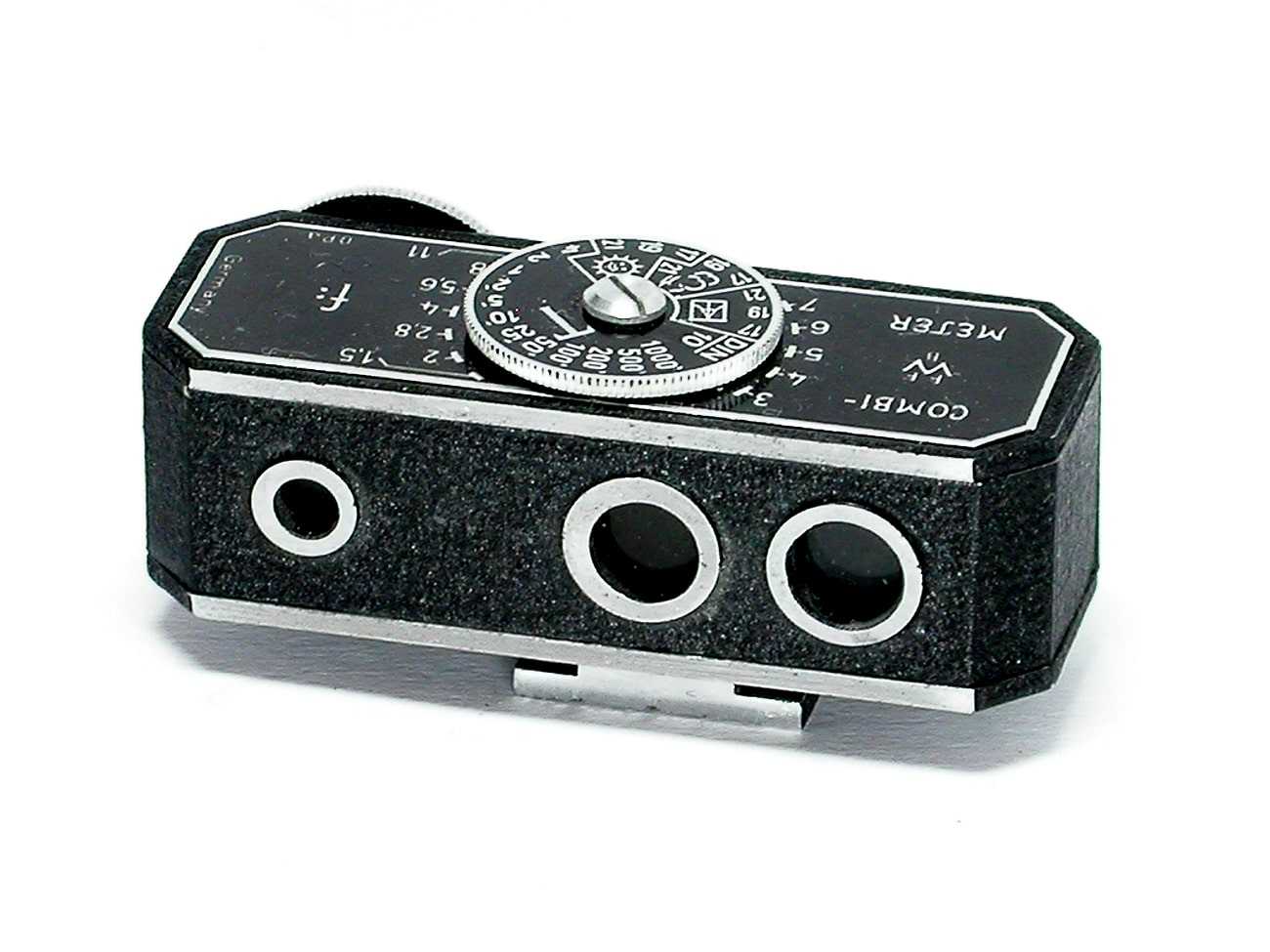 Einer für alles: Aufsteckbarer Entfernungsmesser und optischer Belichtungsmesser sind in diesem Instrument (Mitte der 1950er Jahre, Bundesrepublik Deutschland, Vertrieb: Fotogroßhandel FOGRO KG, Berlin) vereinigt. Entfernungen von unendlich bis zu einem Meter. Messbereich von 1/1.000 Sekunde bis vier Sekunden. Der Fuß ist zu versetzen und leicht jeder Kamera anzupassen. Kostete 1954/55 bei Bremaphot mit Lederetui 18 DM. Es gab auch eine helle Ausführung mit verchromter Oberplatte für 21,50 DM (mit Etui) als Combimeter S. Linkes Okular: Entfernungsmesser, rechter Einblick: Belichtungsmesser.