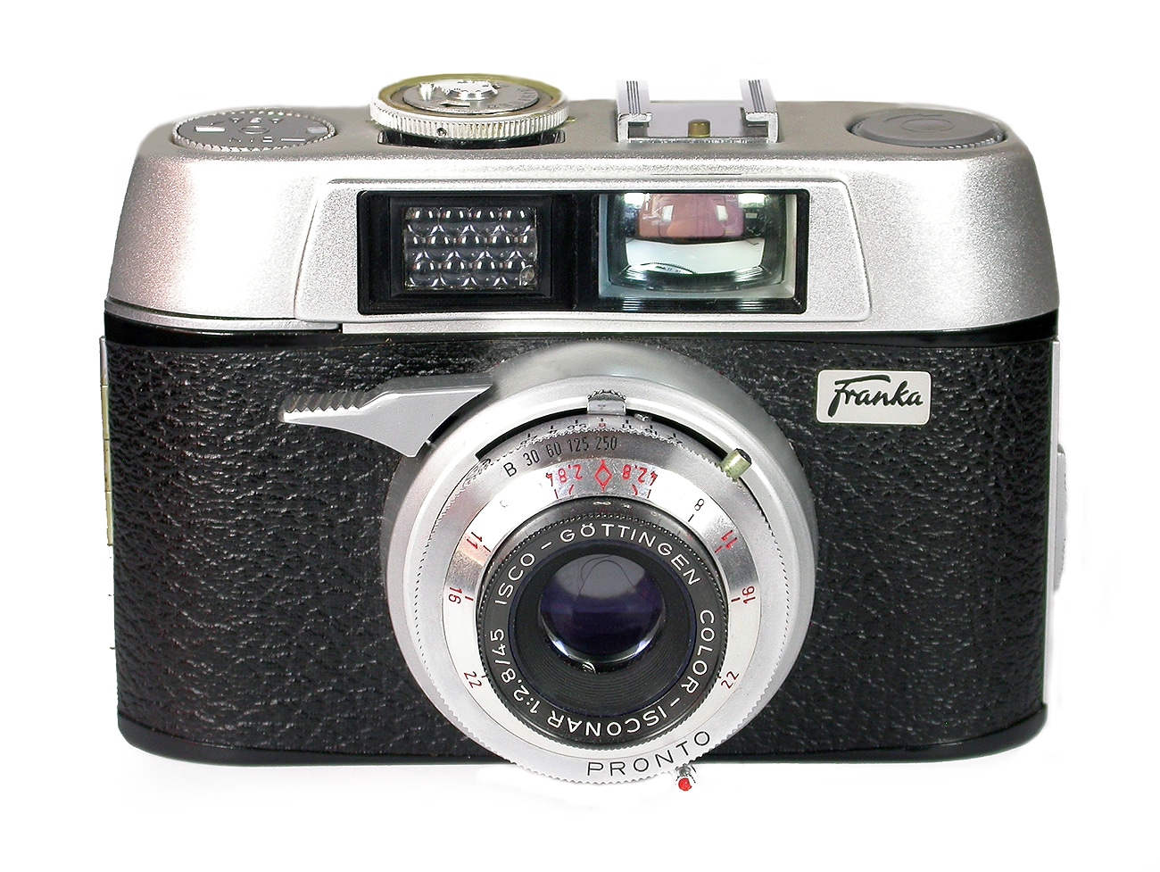 Sucherkamera für den Kleinbildfilm 135 (Aufnahmeformat 24 x 36 mm) der Bayreuther Firma Franka, hergestellt ab 1962. Objektiv: hier ein Color-Isconar 1:2,8/45 mm von Isco-Göttingen mit Frontlinsen-Entfernungseinstellung; Verschluss: Pronto (B, 1/30 bis 1/250 Sekunde; Selbstauslöser). Großbild-Leuchtrahmensucher mit Bildfeldbegrenzung, Doppelbelichtungs- und Leerschaltsperre, Schnellaufzug, Filmzählwerk und Blitzsynchronisation. Eingebauter, ungekuppelter Belichtungsmesser.