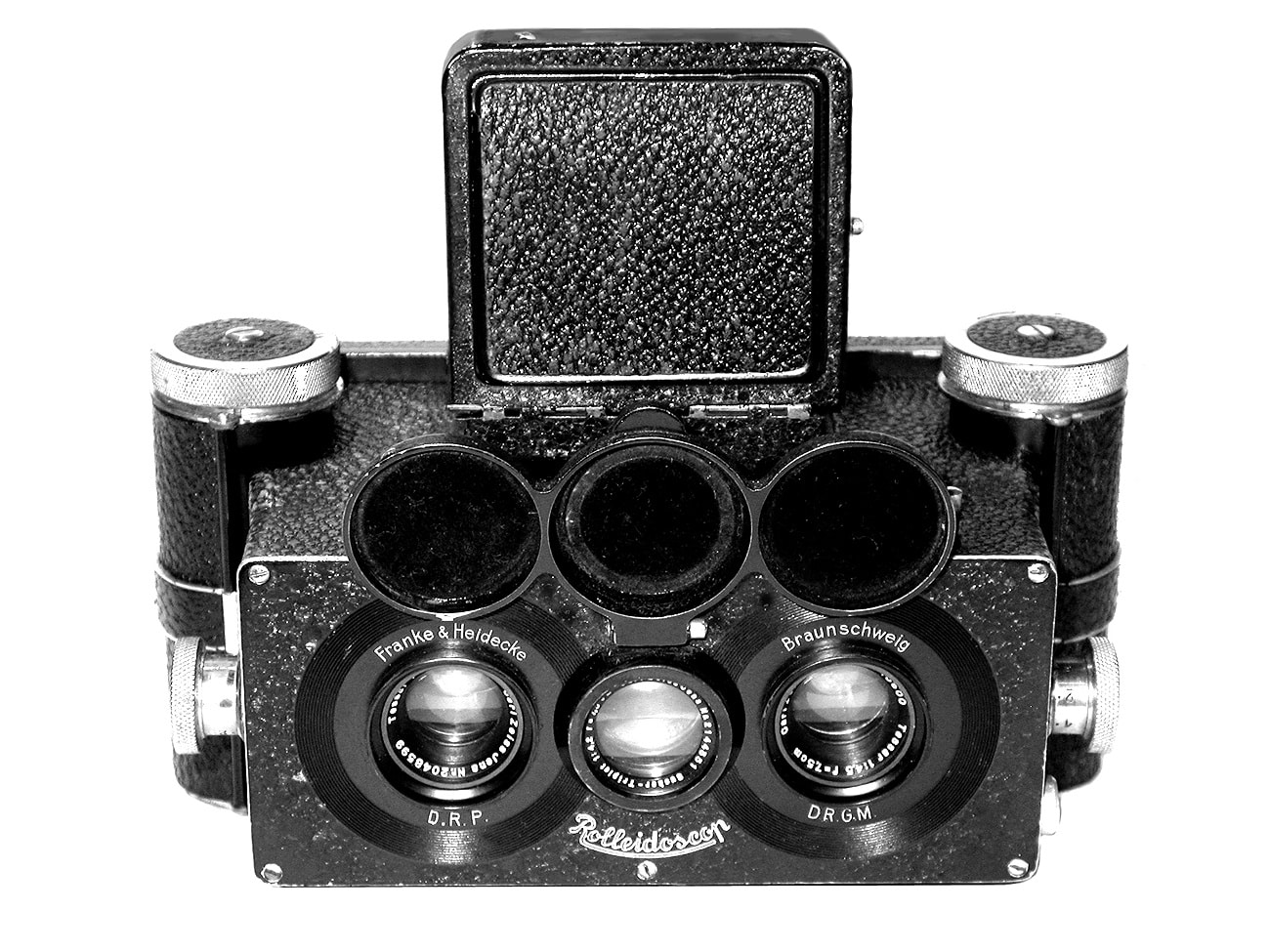 Legendäre Stereo-Kamera für Rollfilm von Rollei, Braunschweig (bis 1982 hieß die Firma offiziell Franke & Heidecke), gebaut ab 1928. Aus dem Katalog der 1930er Jahre: „Diese Stereo-Reflex-Kamera für Tageslicht-Rollfilm-Benutzung verbindet die Vorteile der Stereophotographie mit der Tageslichtwechselung und ergibt ebenfalls vorzügliche Ergebnisse. Als Negativ-Material wird für 4,5 x 10,7-Aufnahmen der 4 x 6,5-Rollfilm, für 6 x 13-Aufnahmen der 6 x 9-Rollfilm benutzt. Ersterer ergibt 5 Stereoaufnahmen bzw. 10 Aufnahmen 4,5 x 4,5 cm, letzterer ergibt 4 Stereoaufnahmen 6 x 13 cm bzw. 8 Einzelaufnahmen 6 x 6 cm.“