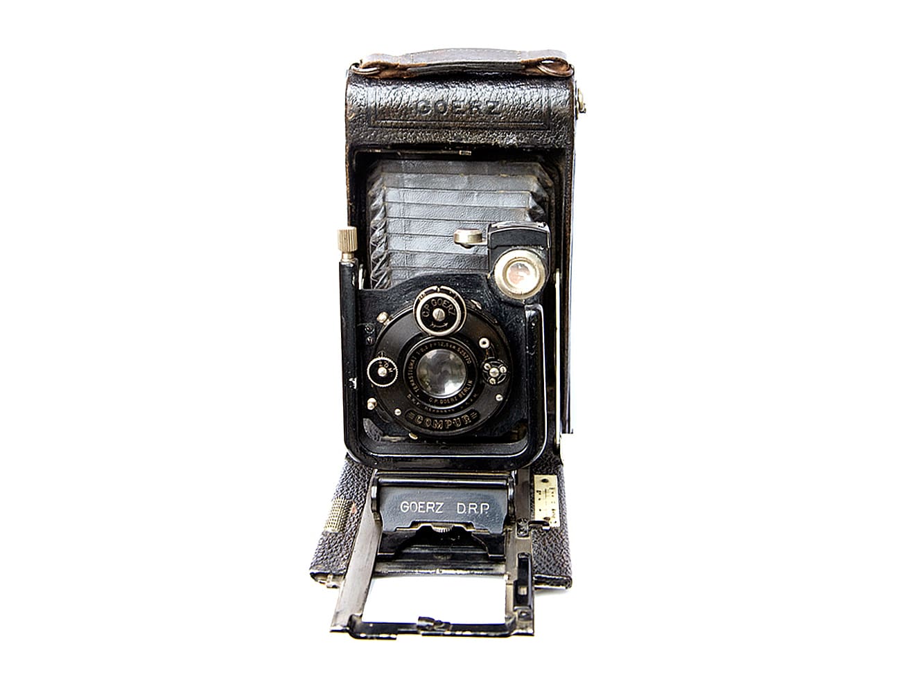 Klappkamera für den Rollfilm D-6/Typ 116 (Aufnahmeformat 6,5 x 11 cm), hergestellt in den 1920er Jahren von C. P. Goerz, Berlin. Objektiv: C. P. Goerz Berlin Tenastigmat 1:6,3/12,5 cm; manuelle Fokussierung mittels Laufboden. Am Museumsexemplar gut erkennbar: die aus Sicht des Fotografen rechts angebrachte Walze zur Verstellung des Laufbodens. Schwenkbarer Brillantsucher mit Libelle. Mechanischer Zentralverschluss Compur (Z, D, 1 bis 1/250 Sekunde); manuelle Belichtungssteuerung. Höhenverstellbare Standarte; Drahtauslöseranschluss, Stativgewinde.