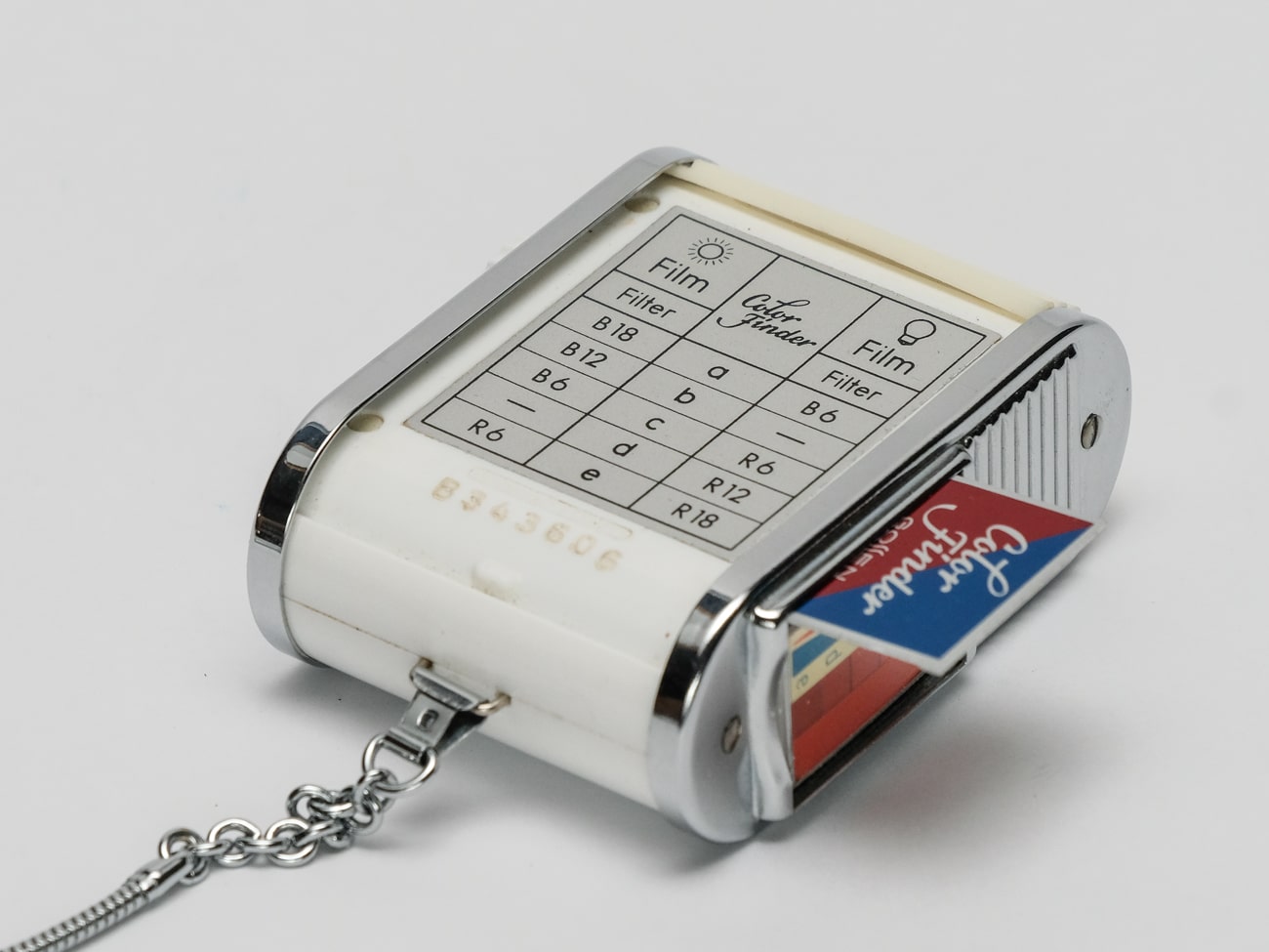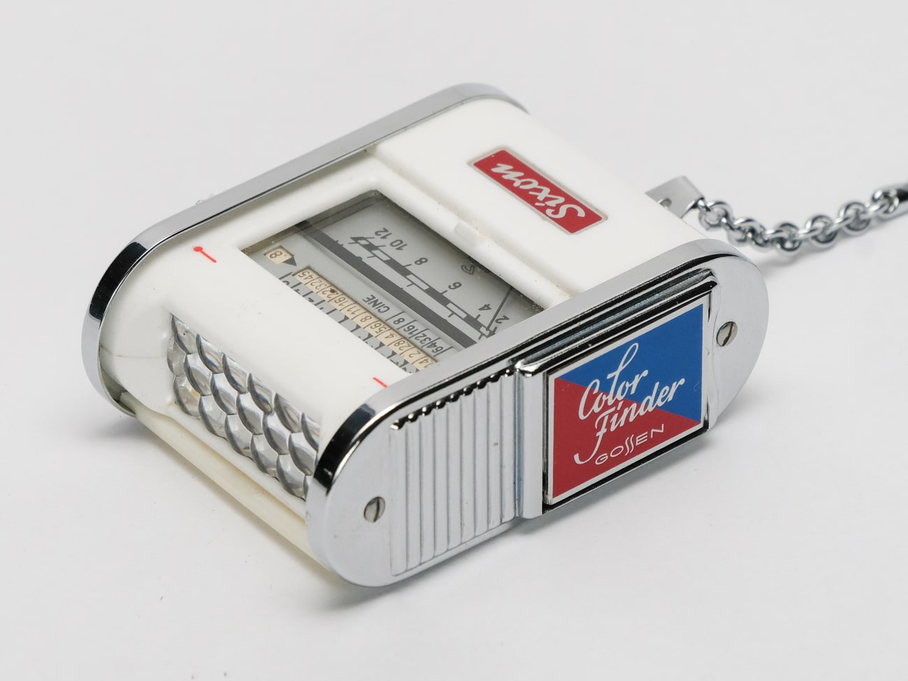 Selen-Belichtungsmesser der Firma Gossen, Erlangen, ab 1954. Im Vergleich zu seinem Vorgänger ist er mit einem Color Finder ausgestattet, mit dessen Hilfe die Farbtemperatur abgeschätzt werden konnte, um eventuell Kunstlicht- oder Tageslichtfilter einzusetzen. Die Selenzelle erzeugt bei Lichteinfall einen elektrischen Strom entsprechend der Helligkeit, eine zusätzliche Stromquelle ist nicht erforderlich. Die Skalenwerte: Belichtungszeiten von 1/500 Sekunde bis 8 Sekunden, Blendenbereich 1,4 bis 45, Lichtwertskala 1 bis 12, Empfindlichkeitsbereich ASA 12-800/DIN 12-30.