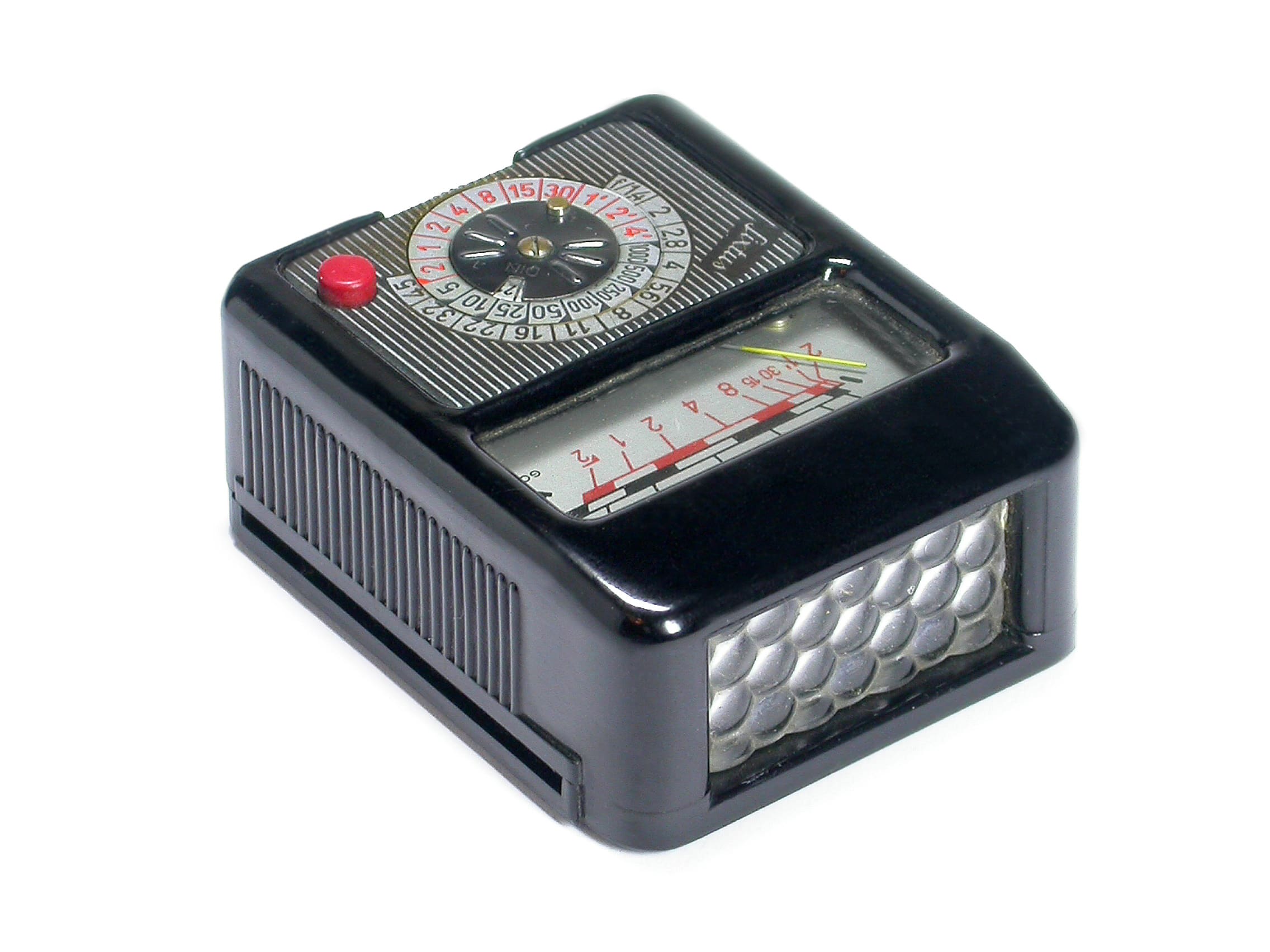 Ein bekannter Belichtungsmesser von Gossen (Erlangen), Anfang der 1950er Jahre, Belichtungsmessbereich 1/1.000 Sekunde bis 4 Minuten. Es gab ihn in drei Versionen („2 N“ für alle „normalen“ Photoapparate, „2 L“ für Leicas, „2 C“ für Kino- und Schmalfilmkameras). Die hier an der rechten Gehäuseseite sichtbare Schiene war die Führung für eine Haube, mit der die Selen-Zelle bei Nichtgebrauch abgedeckt wurde.
