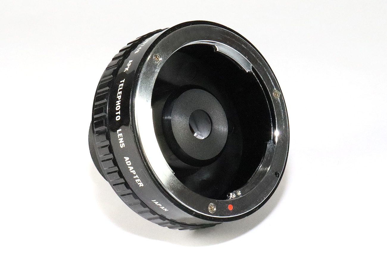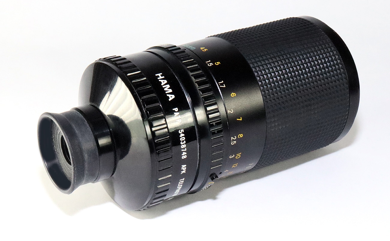 Das ist kein Aufnahmeobjektiv und auch kein Sucher für eine Kamera: Der Hama Telephoto Lens Adapter aus japanischer Produktion dient als relativ preiswerter und vom Gewicht her leichter Ersatz für ein Fernglas oder ein Monokular für Fotografen, die ohnehin schon ein Teleobjektiv in ihrer Fototasche mit sich herumschleppen. Der Vorsatz, in dem sich ein Prisma befindet, damit das Bild auch aufrecht steht, wird wie eine Kamera an ein Objektiv angebracht – wie in diesem Fall ein Pentax-PK-Zoom 70-200 mm – und dann wird das Objektiv wie an einer Kamera scharf gestellt, gegebenenfalls wird noch die Brennweite verändert. Das ergibt je nach verwendetem Objektiv eine Vergrößerung wie bei einem üblichen Fernglas oder einem entsprechenden Monokular.