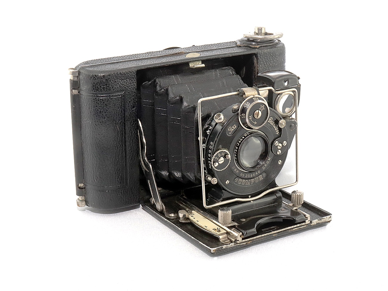 Dieses Modell hier verwendet Rollfilm 120 (einige frühe Versionen gab es für Rollfilm 117), Aufnahmeformat: 6 x 6 cm. Es gibt einen zusammenklappbarer Brillantsucher und einige Versionen haben einen Ikonometer (Rahmensucher) wie im Bild. Lieferbar war die Kamera mit verschiedenen Objektiven, hier ist das Carl Zeiss Jena Tessar 1:4,7/75 mm verbaut. Verschluss ist hier ein Compur mit M, B, Z sowie 1 bis 1/300 Sekunde.