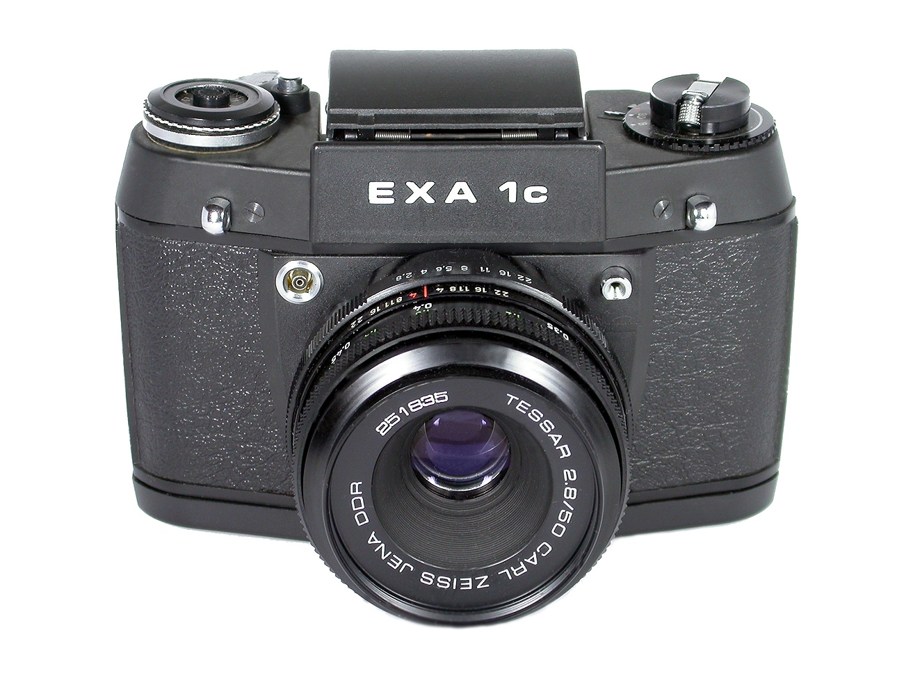 Einäugige Spiegelreflexkamera (SLR) für den Kleinbildfilm 135 (Aufnahmeformat 24 x 36 mm), hergestellt von VEB Pentacon Dresden, DDR, von 1985 bis 1987 in 103.900 Exemplaren. Die vereinfachte, aber echte einäugige Spiegelreflexkamera weist eine Reihe Vorteile auf: Der Lichtschachteinsatz (am Museumsexemplar) ist gegen einen Prismeneinsatz austauschbar. Bei beiden Einsätzen kann die Bildfeldlinse ausgewechselt werden. Es stehen zur Verfügung: eine mattierte Bildfeldlinse und eine Fresnellinse mit Mattscheibenringfeld und Mikroprismenraster. Die Objektive sind auswechselbar; hier mit Carl Zeiss Jena DDR Tessar 1:2,8/50 mm. Der Schraubanschluss ist der gleiche wie bei der Praktica (M 42). Die Kamera ist mit der automatischen Druckblendeneinrichtung versehen. Für die Belichtung ist der einfache Klappenverschluss vorgesehen, der Belichtungszeiten von 1/30, 1/60, 1/125, 1/175 Sekunde und B aufweist. Weitere Merkmale: Blitzanschluss, Schnellspannhebel, Verschlussauslösesperre, Filmmerkscheibe.