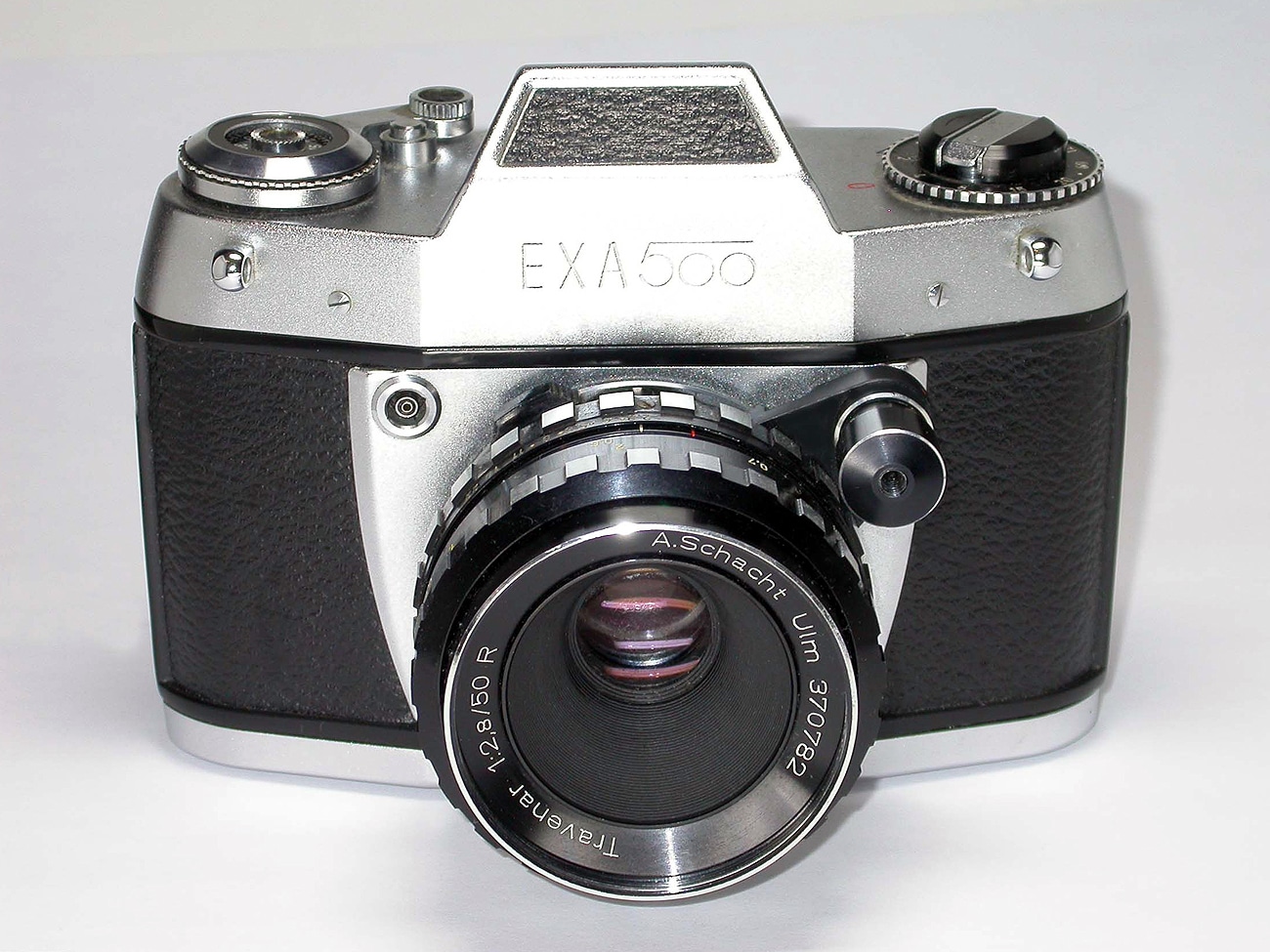 Einäugige Spiegelreflexkamera (SLR) für den Kleinbildfilm 135 (Aufnahmeformat 24 x 36 mm), hergestellt in der DDR von 1966 bis 1969. Für Wechselobjektive mit Exakta-Bajonett, hier mit Objektiv A. Schacht Ulm Travenar 1:2,8/50 mm („Zebra“), manuelle Fokussierung. Mechanischer Schlitzverschluss mit Zeiten von 1/2 bis 1/500 Sekunde.