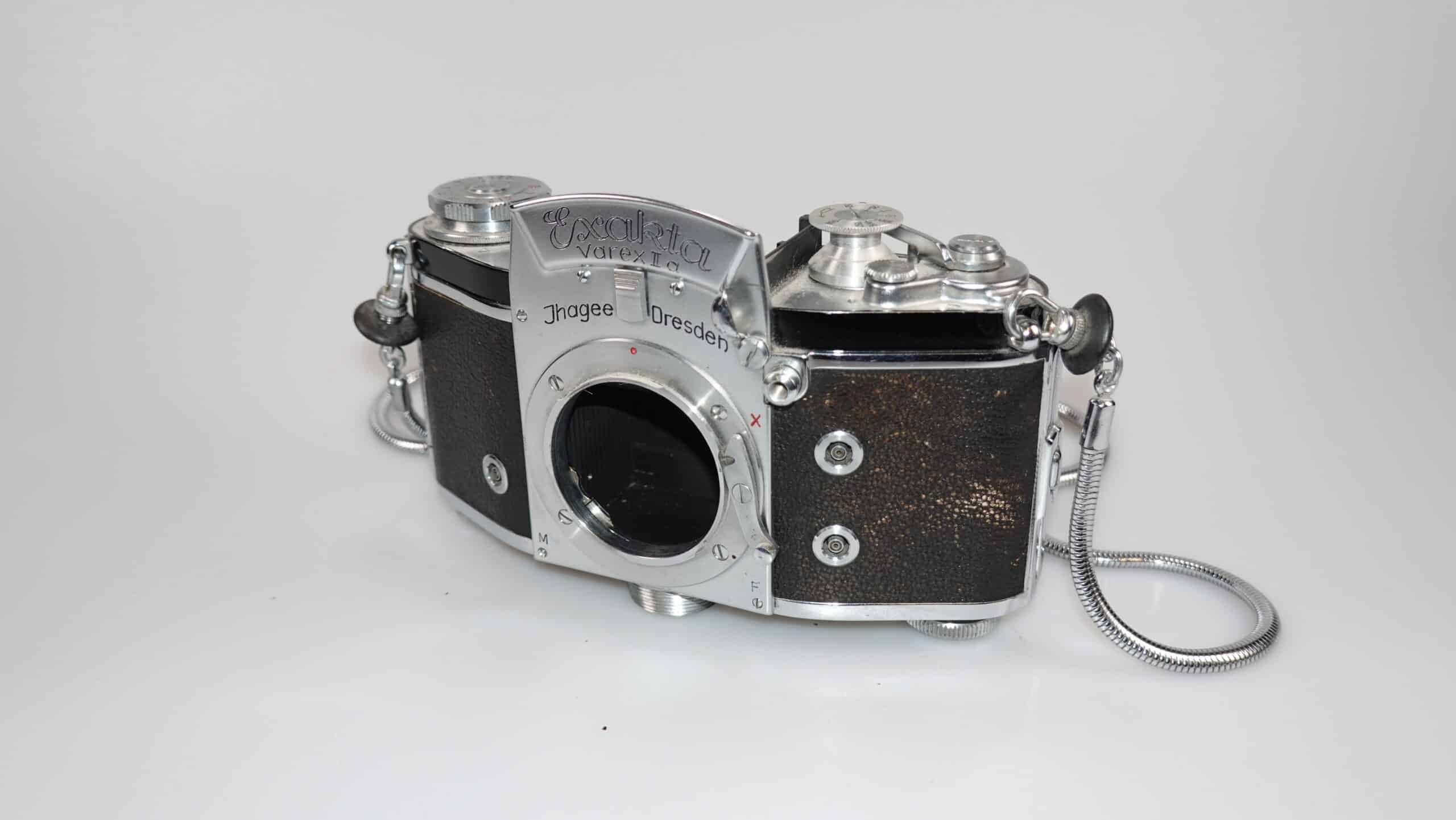Einäugige Spiegelreflexkamera (SLR) für den Kleinbildfilm 135 (Aufnahmeformat 24 x 36 mm), hergestellt in Dresden. Für Wechselobjektiv mit Exakta-Bajonett, hier mit Carl Zeiss Jena DDR Flektogon 1:4/20 mm. Für wechselbare Suchereinsätze, hier mit Prismensucher Harwix TTL-Prisma mit integrierten Belichtungsmesser. Mechanischer Schlitzverschluss (T, B, 12 Sekunden bis 1/1.000 Sekunde).