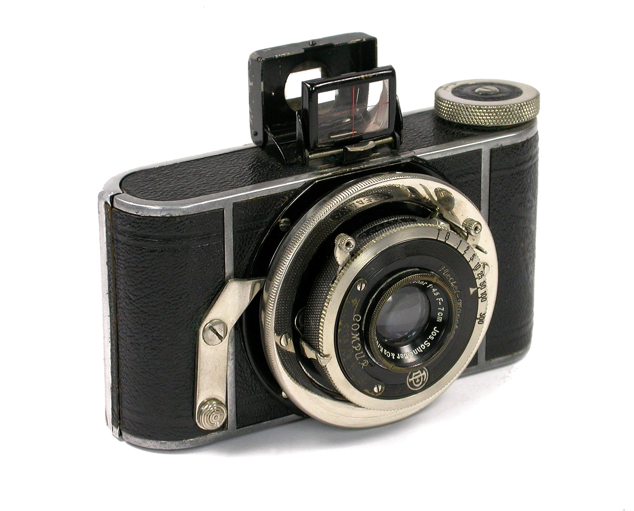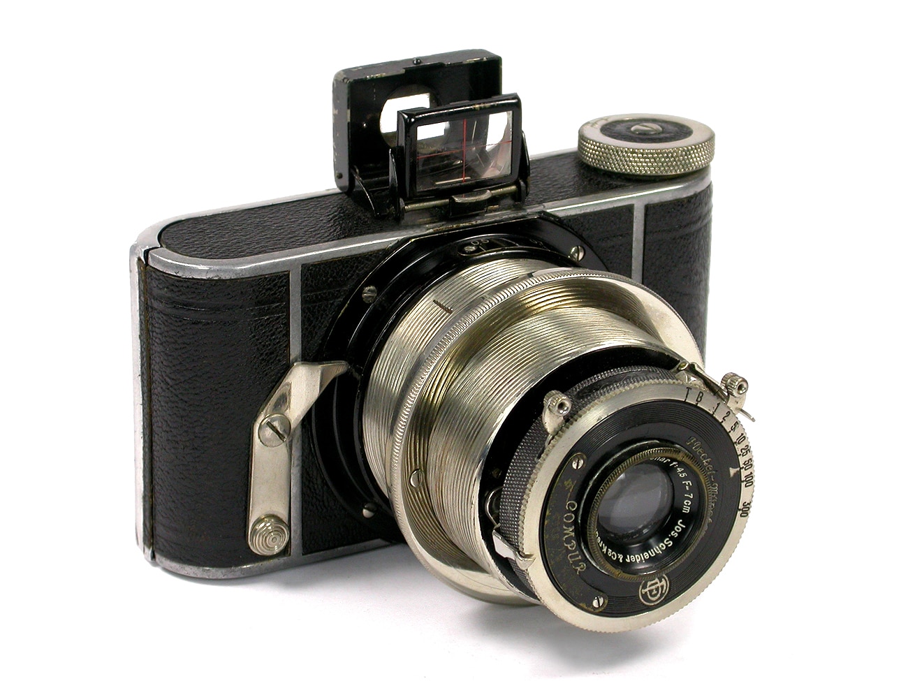 Eigenwillig konstruierte Sucherkamera für den Rollfilm 127 (Aufnahmeformat 4 x 6,5 cm), hergestellt von 1931 bis 1939. Per Schneckengang bis 0,5 Meter Nahaufnahmegrenze ausziehbares Objektiv, hier ein Jos. Schneider & Co. Kreuznach Xenar 1:4,5/7 cm; manuelle Fokussierung. Aufklappbarer Durchsichtsucher. Mechanischer Zentralverschluss Compur (T, B, 1 bis 1/300 Sekunde); manuelle Belichtungssteuerung.