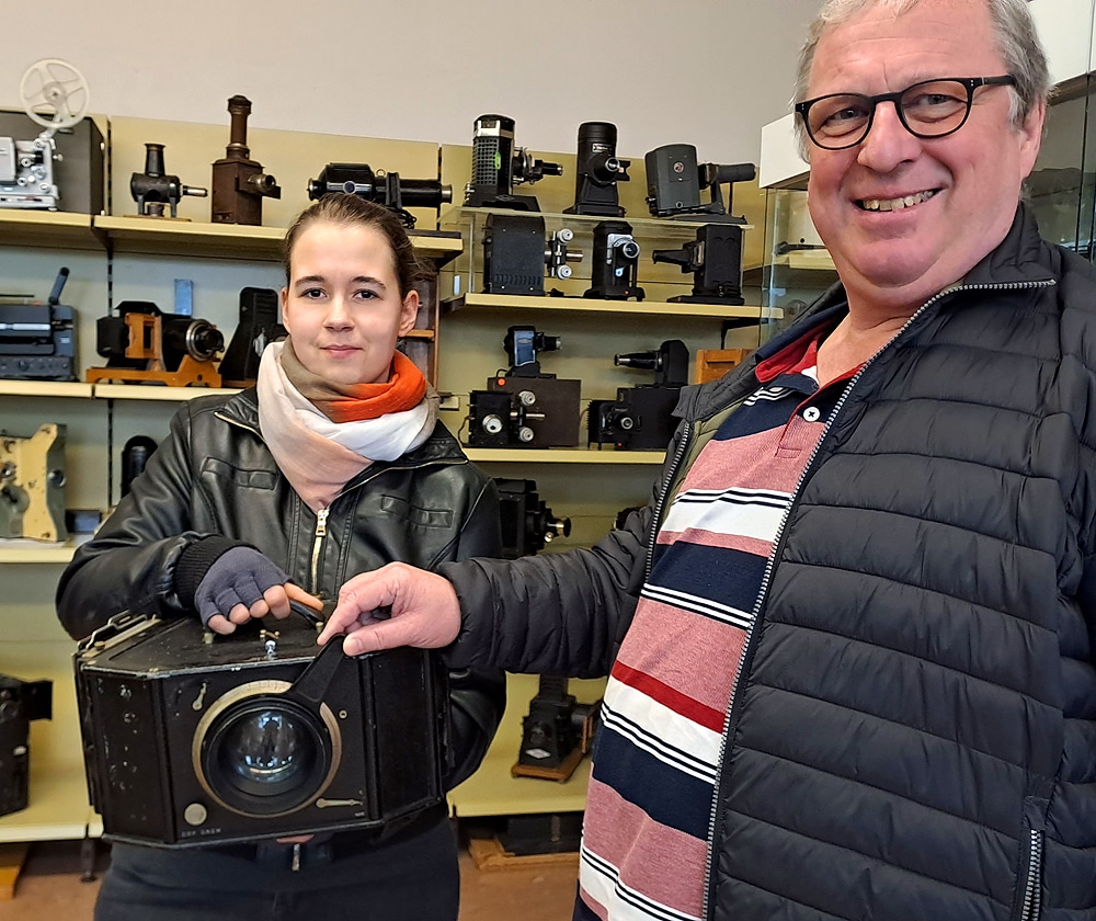 Dieses Exponat ist das Highlight aus der Zustiftung von Tabea Sienkiewicz, die im Herbst 2022 die wertvolle Sammlung ihres Vaters Thorald Schulze-Kaschel dem Deutschen Kameramuseum anvertraute.