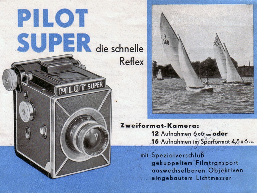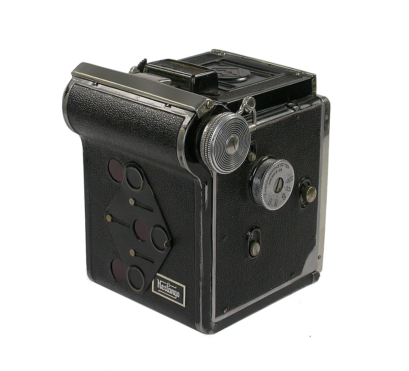 Leichtmetall-Spritzgussgehäuse aus einem Stück, selbsttätig aufspringender Lichtschacht mit eingebauter stark vergrößernder Springlupe. Volles Format 6 x 6 cm und Einlage für Sparformat 4,5 x 6 cm; Durchblicksucher für beide Formate, Spezialverschluss für B sowie Momentzeiten von 1/20 bis 1/200 Sekunde, Belichtungssperre, Rückwand mit Panschieber, Stativgewinde, Riemenösen, Drahtauslöser.