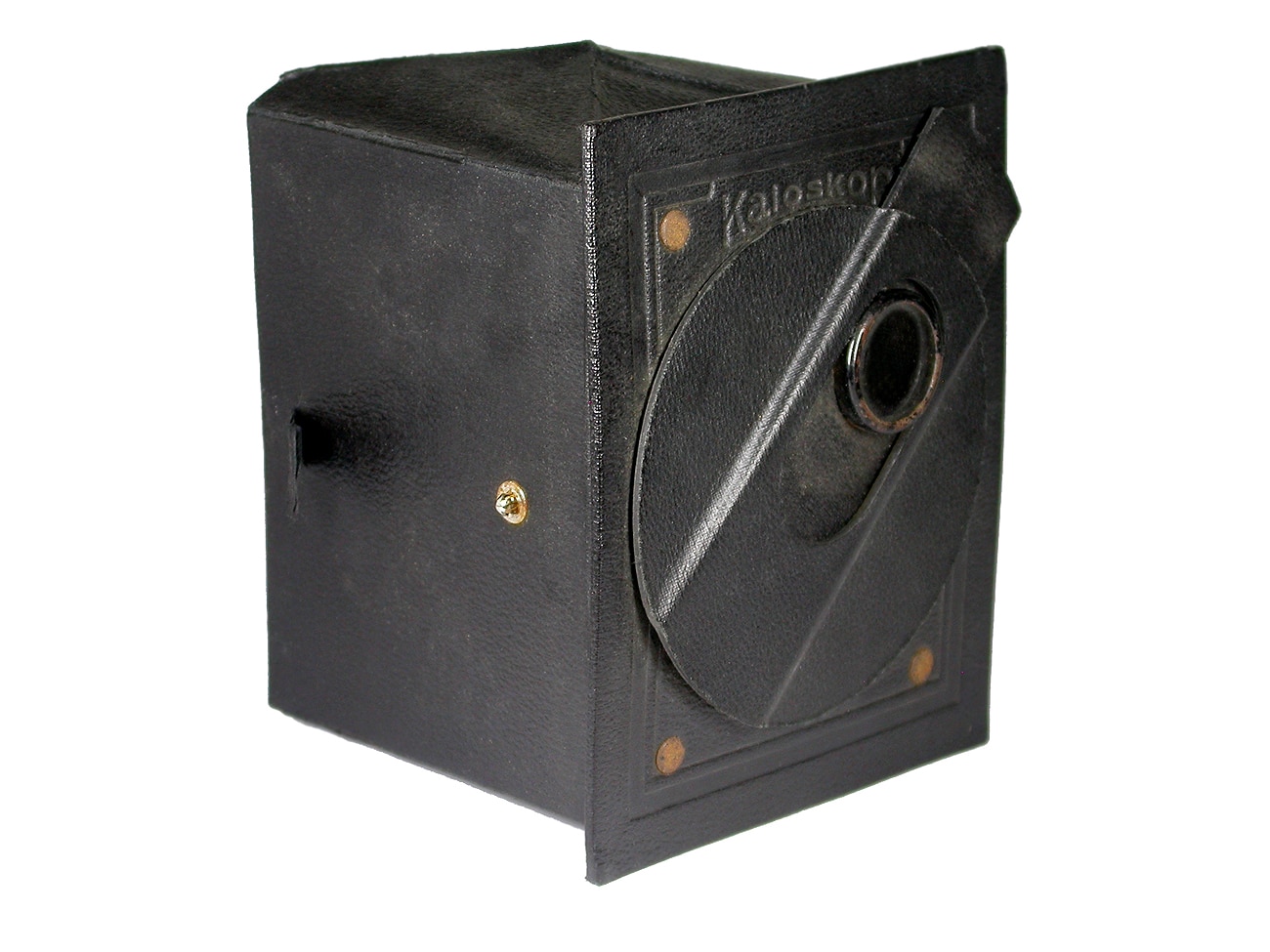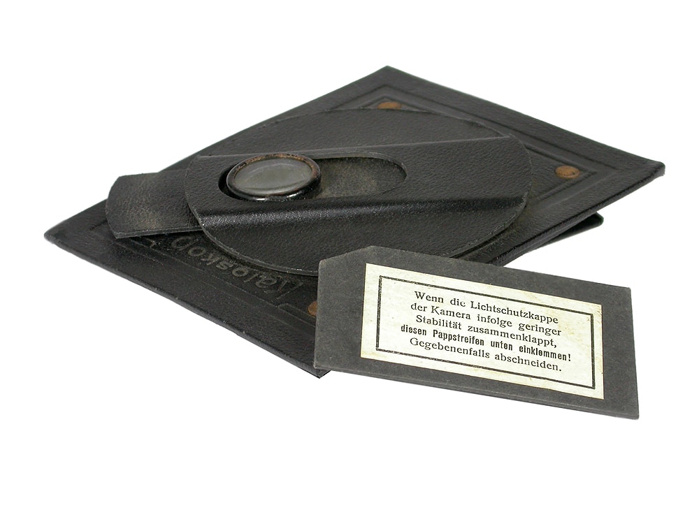 Was ist das? Anfangs gab uns dieses Teil Rätsel auf, doch das Internet klärte uns schnell auf: Das Kaloskop ist ein Sucheraufsatz für Plattenkameras. Es wirkt wie das schwarze Tuch bei Großformatkameras: Die Mattscheibe ist besser zu beobachten. Vor allem, weil auch eine Linse eingebaut ist, die sich innerhalb eines Kreises frei verschieben lässt.