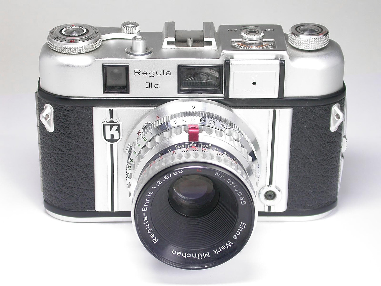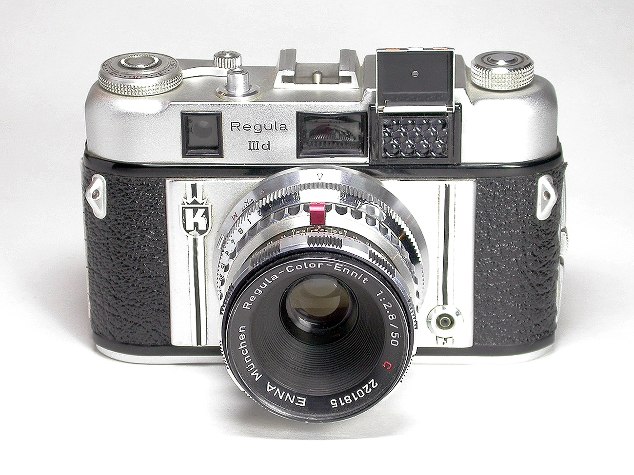 Messsucher- und Systemkamera für den Kleinbildfilm 135 (Aufnahmeformat 24 x 36 mm), hergestellt von der King KG, Bad Liebenzell, ab 1956. Hier mit dem Normalobjektiv Enna Werk München Color-Ennit 1:2,8/50 mm; daneben gab es Wechselobjektive mit Brennweiten von von 28 bis 200 mm. Leuchtrahmensucher mit gekuppeltem Entfernungsmesser. Mechanischer Zentralverschluss Prontor SVS (B, 1 bis 1/300 Sekunde; Selbstauslöser), zugleich Lichtwertverschluss; eingebauter, ungekuppelter Belichtungsmesser; manuelle Belichtungssteuerung. Gehäuseauslöser mit Drahtauslöseranschluss; Schnellspannhebel; Zubehörschuh; Blitzsynchronkontakt. Damaliger Preis (1957): stolze 285 Mark.
