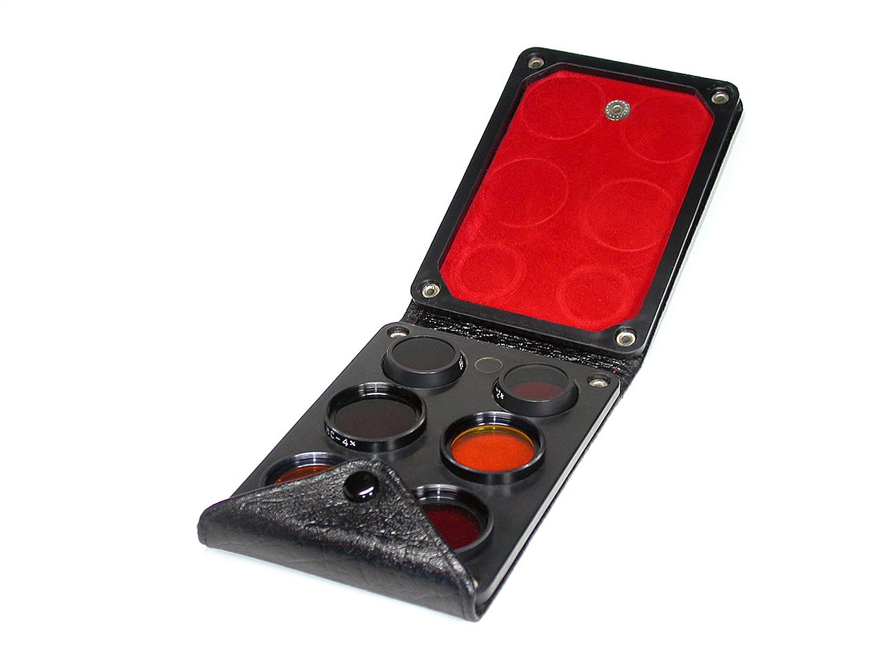 Seltenes Zubehörteil: Ein ledernes Etui mit Filtervorsätzen für russische Filmkameras, zum Beispiel für die Quarz Zoom.