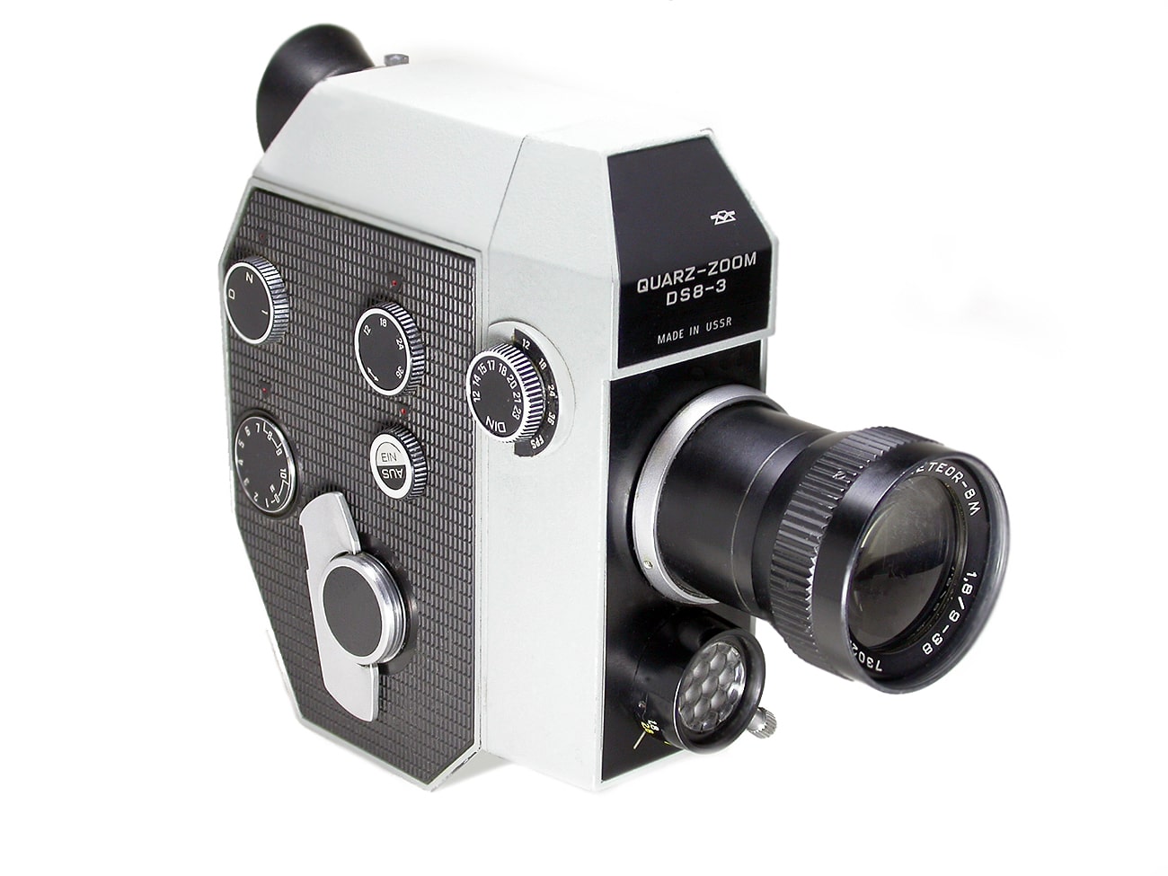 Doppel-Super-Acht-Filmkamera, hergestellt ab 1973 von Krasnogorskij Zavod Imeni S.A. Sverev (KMZ), UdSSR. Objektiv: Meteor-8 M 1:1,8/9-38 mm; Fokussierung und Brennweitenverstellung manuell. Reflexsucher mit Mikroprismen zur Entfernungseinstellung und Dioptrienkorrektur. Federwerksantrieb (Einzelbild; 12, 18, 24 und 36 Bilder pro Sekunde); Belichtungsmesser mit Selenzelle, manuelle („halbautomatische“) Belichtungssteuerung. Anschlüsse für Drahtauslöser und Stativ; abnehmbarer Handgriff.