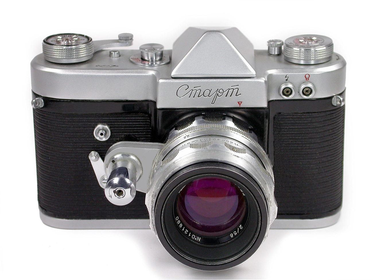 Die Start, oft die „Russische Exakta“ genannt, wurde zwischen 1958 und 1964 gebaut. Im Gegensatz zu den einfacheren Zenit-Modellen war die Start die russische Profikamera für den Kleinbildfilm 135 (Aufnahmeformat: 24 x 36 mm). Bei der hier gezeigten Version ist ihr Name (Старт = Start) in Schreibschrift auf dem Prismengehäuse zu finden. Für den Export gab es noch eine andere Version mit dem Namen in lateinischer Schrift. Obwohl kein direkter Nachbau der Exakta, übernahm sie fast alle deren Ausstattungsmerkmale. Zum Beispiel: Wechselsucher, Tuch-Schlitzverschluss (bis 1/1.000 Sekunde), Bajonettanschluss, außen liegende Blendenübertragung. Sogar das Filmabschneidemesser ist vorhanden. Der Wechselsucher ist eine Einschubversion, ähnlich wie bei der Edixa.