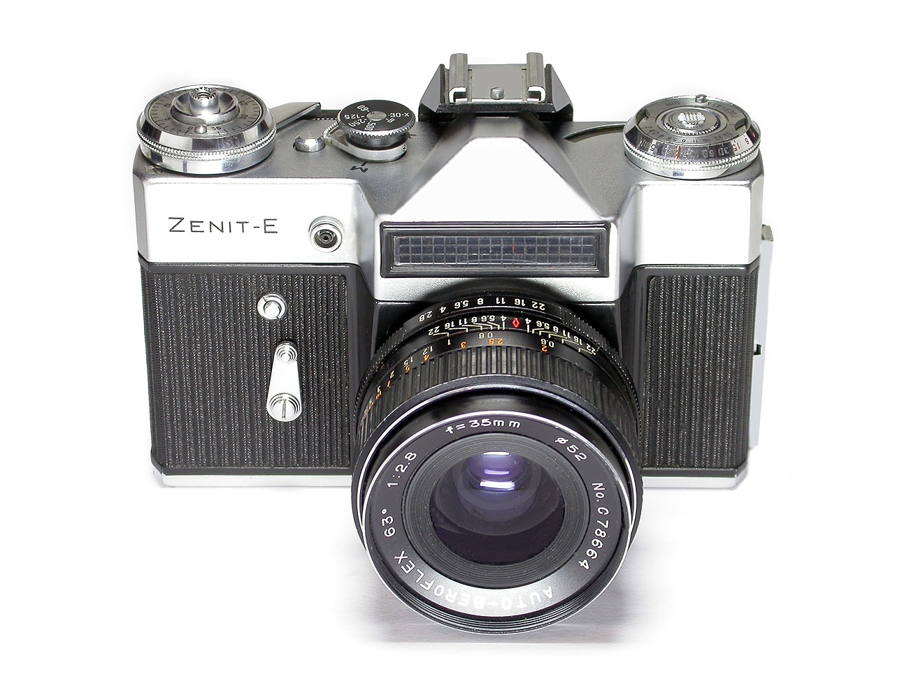 Einäugige Spiegelreflexkamera (SLR) für den Kleinbildfilm 135 (24 x 36 mm), hergestellt von Krasnogorsk Mechanik Werke (KMZ), Krasnogorsk, UdSSR, von 1965 bis 1982. Für Wechselobjektive mit M-42-Gewindeanschluss, hier mit Auto-Beroflex 1:2,8/35 mm; manuelle Fokussierung. Prismensucher. Mechanischer Schlitzverschluss (B, 1/30 bis 1/500 Sekunde; Selbstauslöser); ungekuppelter Belichtungsmesser, manuelle Belichtungssteuerung.