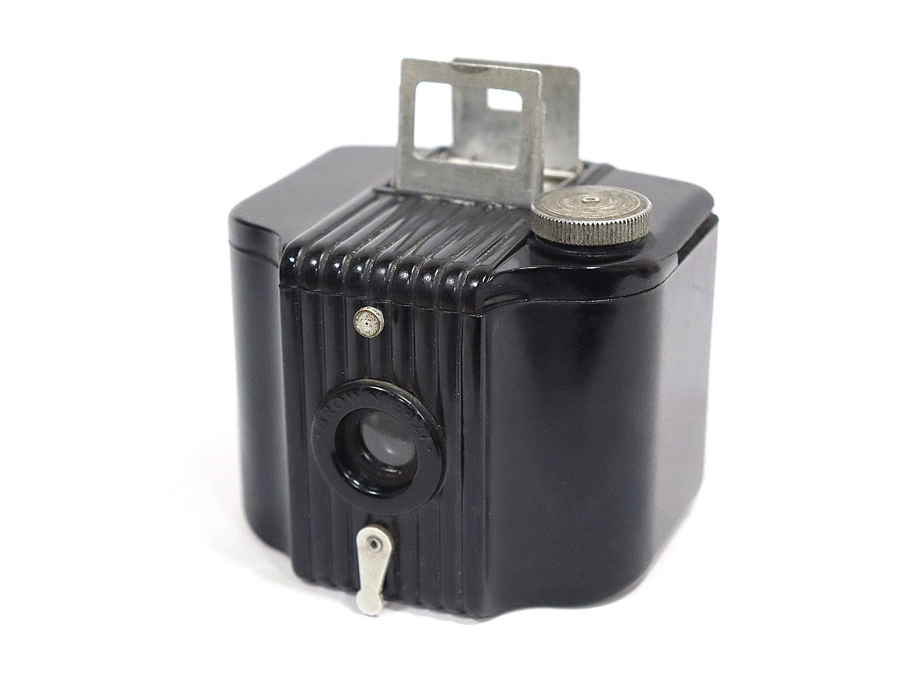 Boxkamera für den Rollfilm 127 (Negativformat: 4 x 6,5 cm), produziert in den USA (1934-1941) und in England (1948-1952 – dieses Exemplar). Meniskusobjektiv, aufklappbarer Rahmensucher, Rotationsverschluss.