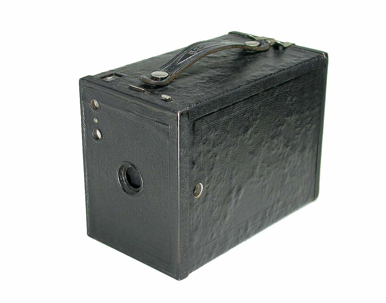 Boxkamera von Kodak, Great Britain, hergestellt von 1901 bis 1933, für den Rollfilm 120 (Negativformat 6 x 9 cm). Meniskus-Frontlinse, Moment- und Zeitverschluss, drei Blenden, Karton-/Holzgehäuse, Stativgewinde.
