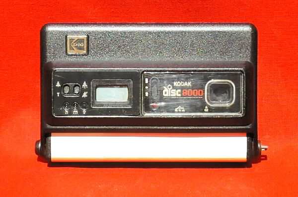 Disc-Kamera von Kodak, made in USA, gebaut 1982 bis 1984 (in England verkauft noch bis 1987). Objektiv: asphärisch 1:2,8/12,5 mm, Fixfokus mit zuschaltbarer Porträtlinse. Verschluss: 1/100 und 1/200 Sekunde, elektronischer Selbstauslöser und Digitaluhr im Schutzdeckel, der aufgeklappt als Standfläche diente.