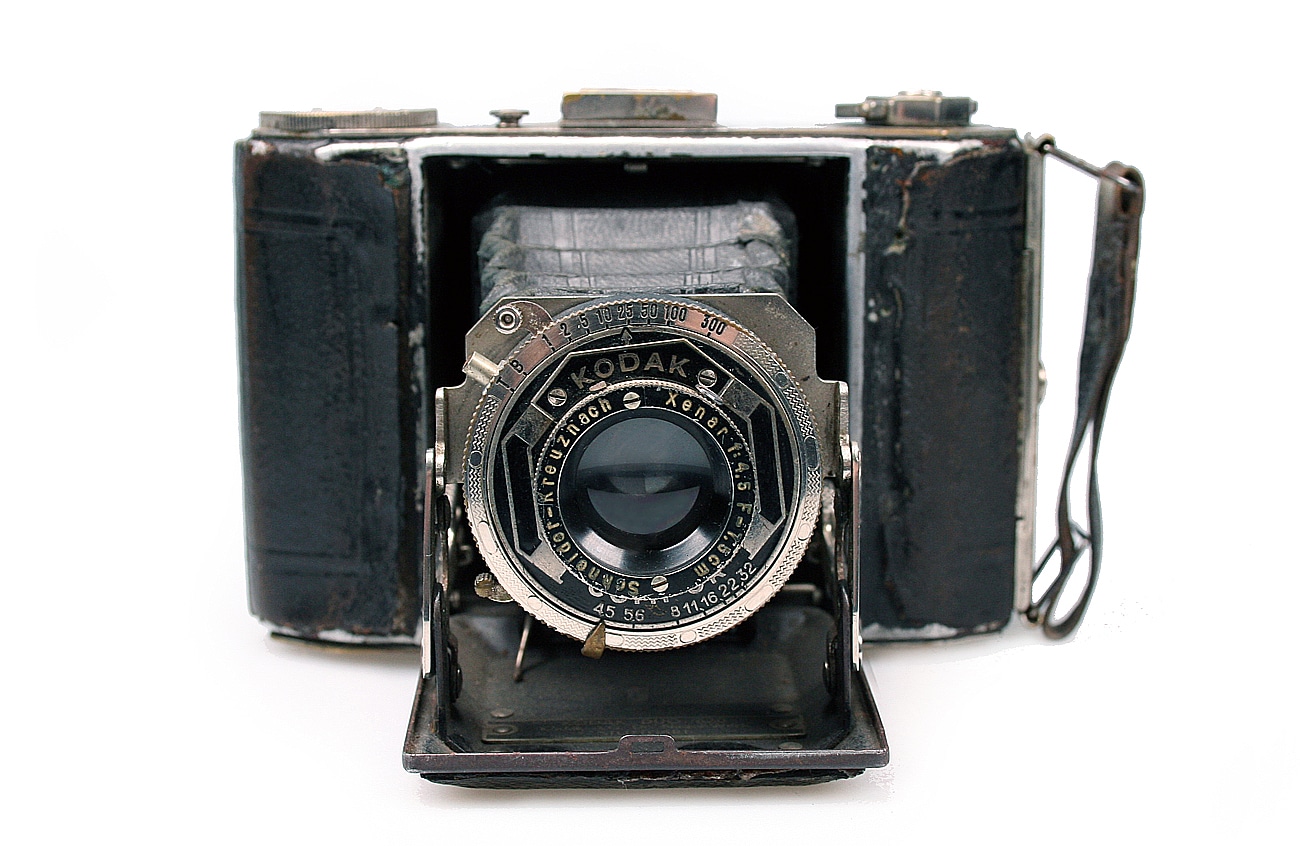 Klapp-/Spreizenkamera (1933-1937) von Kodak (Stuttgart) für den Rollfilm 120/620/B2 (Aufnahmeformat 6 x 4,5 cm). Objektiv: Schneider-Kreuznach Xenar 1:4,5/7,5 cm, manuelle Scharfstellung, Newtonsucher, manuelle Belichtungssteuerung, mechanischer Zentralverschluss – hier mit Compur (T, B, 1-1/300 Sekunde) . Damalige Werbung: „Ein praktisches Hilfsmittel ist der mechanische Tiefenschärfer, der nach einfachem Drehen sofort die Schärfenzone für jede Entfernung und Blendenstellung angibt. Beim Herausspringen des Kamerabalgens wird ein Vorwölben des Films durch eine besonders wirksame Einrichtung verhindert.“ Gebaut in etwa 81.000 Exemplaren in sieben Verschluss/Objektiv-Kombinationen.