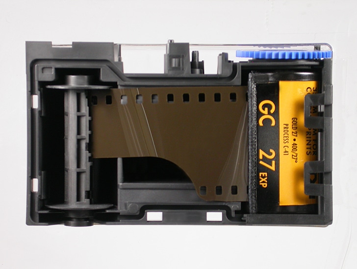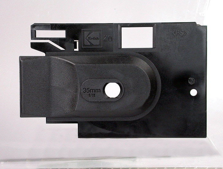 Sieht auf den ersten Blick aus wie ein Musterkoffer für Kodak-Vertreter, war aber ein edles Sammlerstück, limitiert auf 3.000 Sets (hier die Nummer 0368). Der Koffer aus Plexiglas beinhaltet eine komplette Einwegkamera für den 135er-Kleinbildfilm und daneben die zwei Teile eines Bodys – einmal die Rückseite mit eingelegtem Film, einmal die Vorderseite.