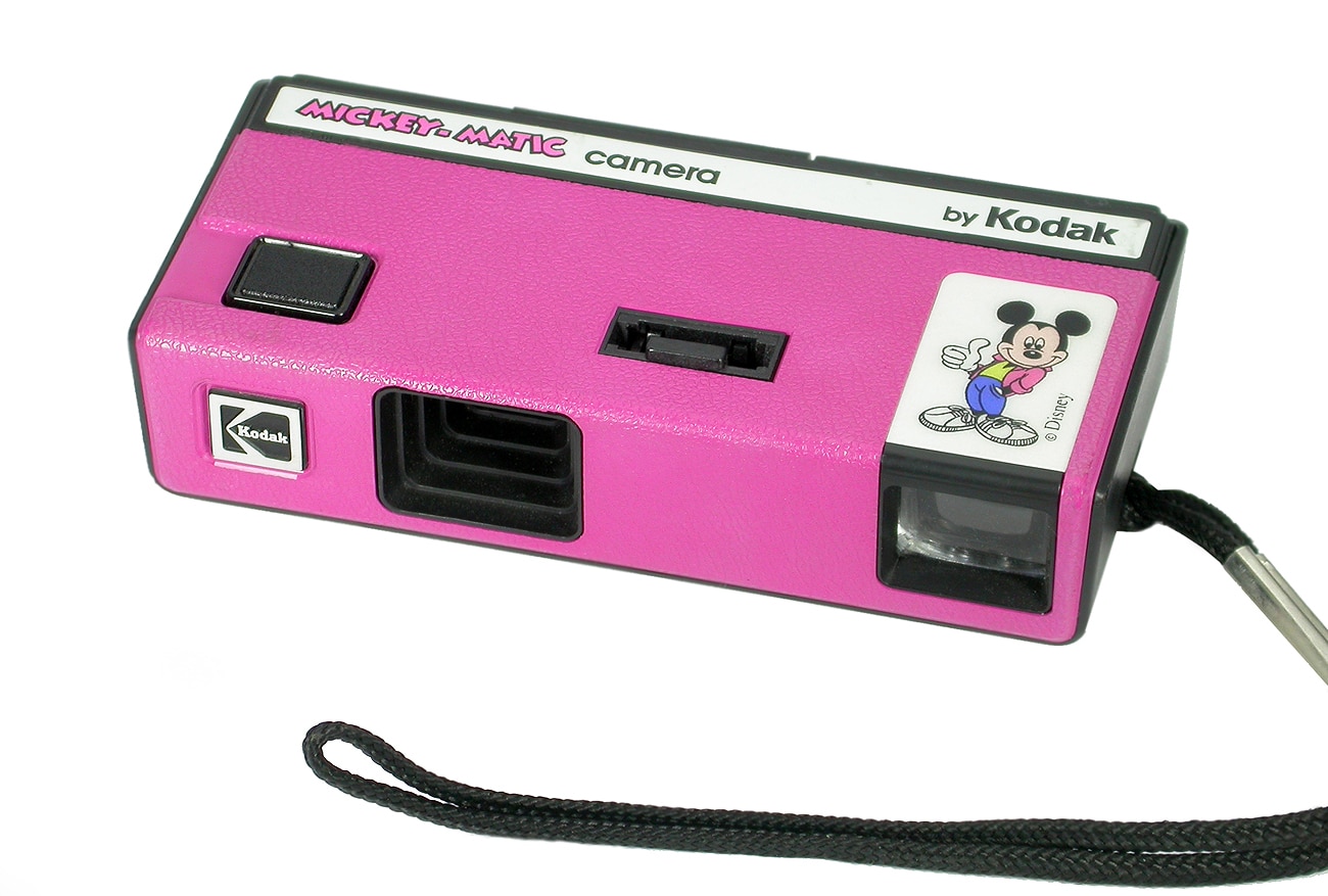 Eine eigenwillige Pocketkamera für den Pocketfilm 110 (Negativformat 13 x 17 mm) für Disney-Fans: Diese Mickey-Matic Camera wurde von Kodak produziert. Objektiv ohne Bezeichnung; Fixfokus. Durchsichtsucher. Einfachverschluss; manuelle Belichtungssteuerung. Blitz: Flipflash-Blitzschiene.