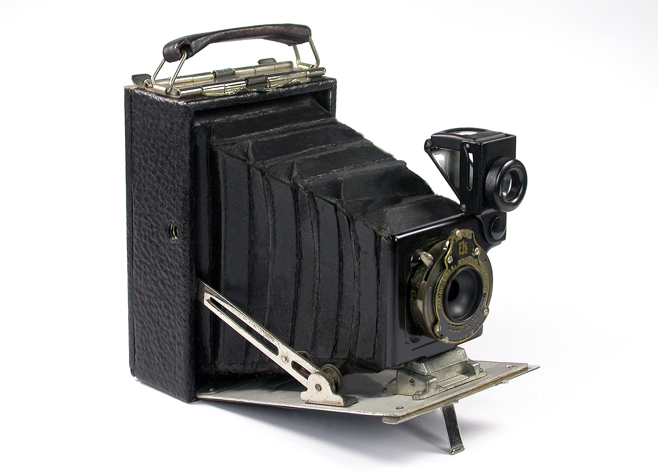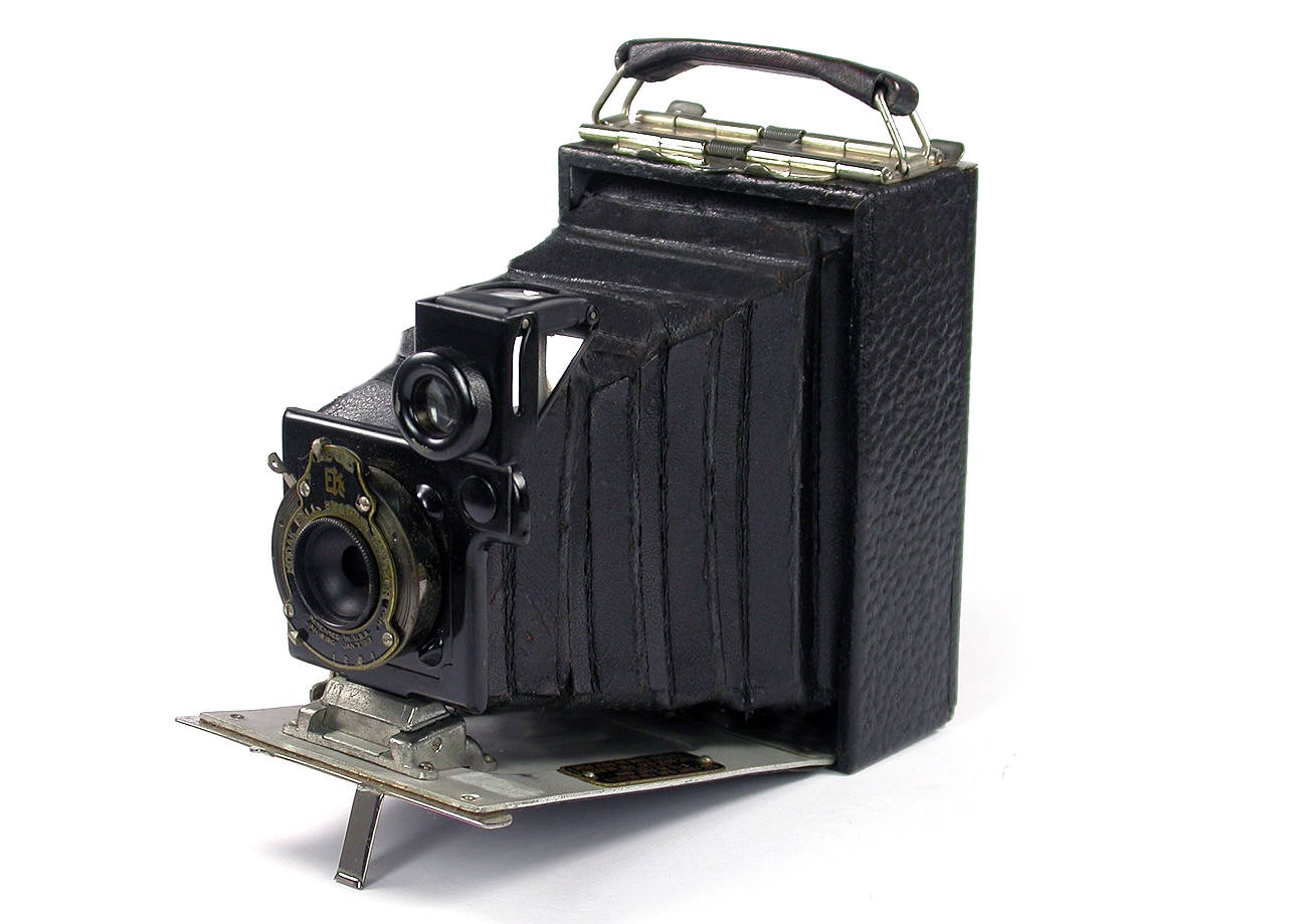 Sucherkamera (1909-1912) für Platten oder Filmpacks (Aufnahmeformat 6 x 9 cm). Klapp-/Springkonstruktion, Brillantsucher, mechanischer Schlitzverschluss Ball Bearing (B, T, 1/25 und 1/50 Sekunde). Diese Kamera hat drei Besonderheiten: einmal fällt auf, dass die Spreizenkonstruktion nur auf einer Seite des Balgens angebracht ist (Bild). Zum Zweiten gibt es keinen Laufboden, sondern die Objektivplatte am Balgen wird einfach aus dem Gehäuse herausgezogen und in eine Führung gesteckt und so arretiert. Und zum Dritten ist dies eine der ersten Kameras, die Filmpacks verwendet haben. Die Firma Premo (1899 gegründet) war 1907 von Kodak aufgekauft worden. Bis 1922 wurden noch Kameras von Kodak unter diesem Markennamen produziert. Die meisten dieser Premo-Modelle von Kodak waren für die neuartigen Filmpacks konstruiert.