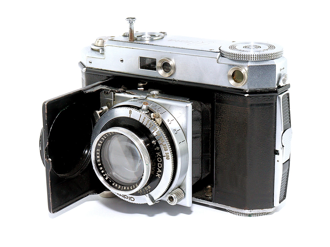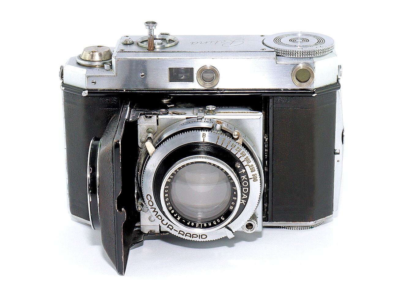 Seltene deutsche Kamera mit gekuppeltem Entfernungsmesser (1936/1937) aus Stuttgart für den Kleinbildfilm 135 (Aufnahmeformat: 24 x 36 mm); Klapp-/Springkonstruktion, manuelles Scharfstellen, mechanischer Zentralverschluss, manuelle Belichtungssteuerung. Gebaut in rund 4.600 Exemplaren.