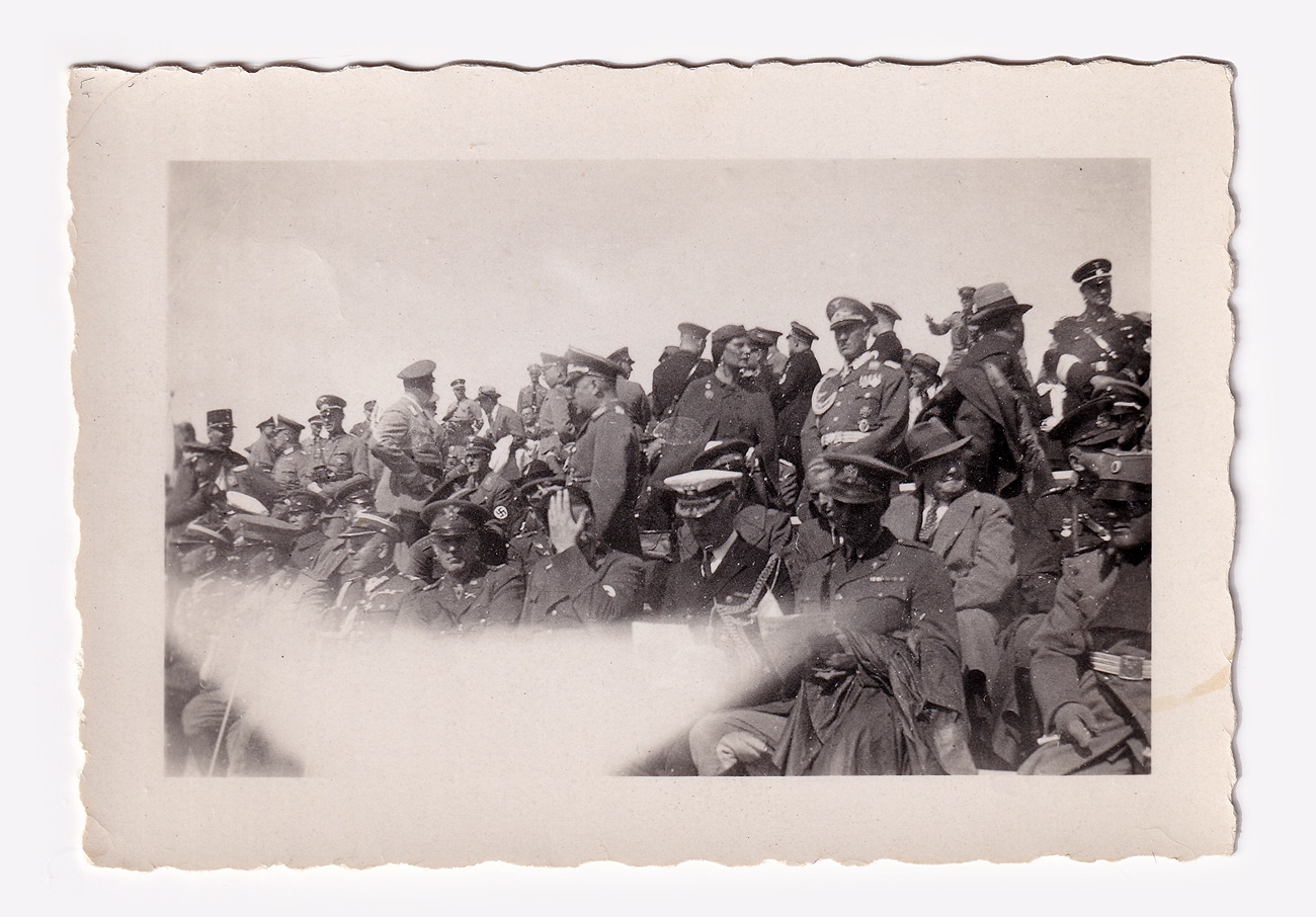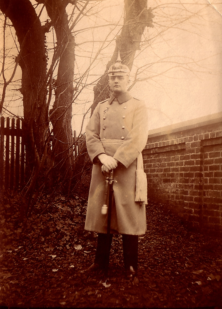Dieser Apparat gehörte einem Berufsoffizier namens Karl Otto Heinrich Dehning aus Celle, der beide Weltkriege mitmachte. Name und Abteilung hatte jemand auf die selbst genähte Tasche der Kamera gestickt. Kamera und Tasche haben die Zeiten überlebt. Sogar einige Fotos mit typischen Soldatenszenen, auf einer Aufnahme dürfte sogar Adolf Hitler mit Gefolge zu sehen sein – siehe unten.