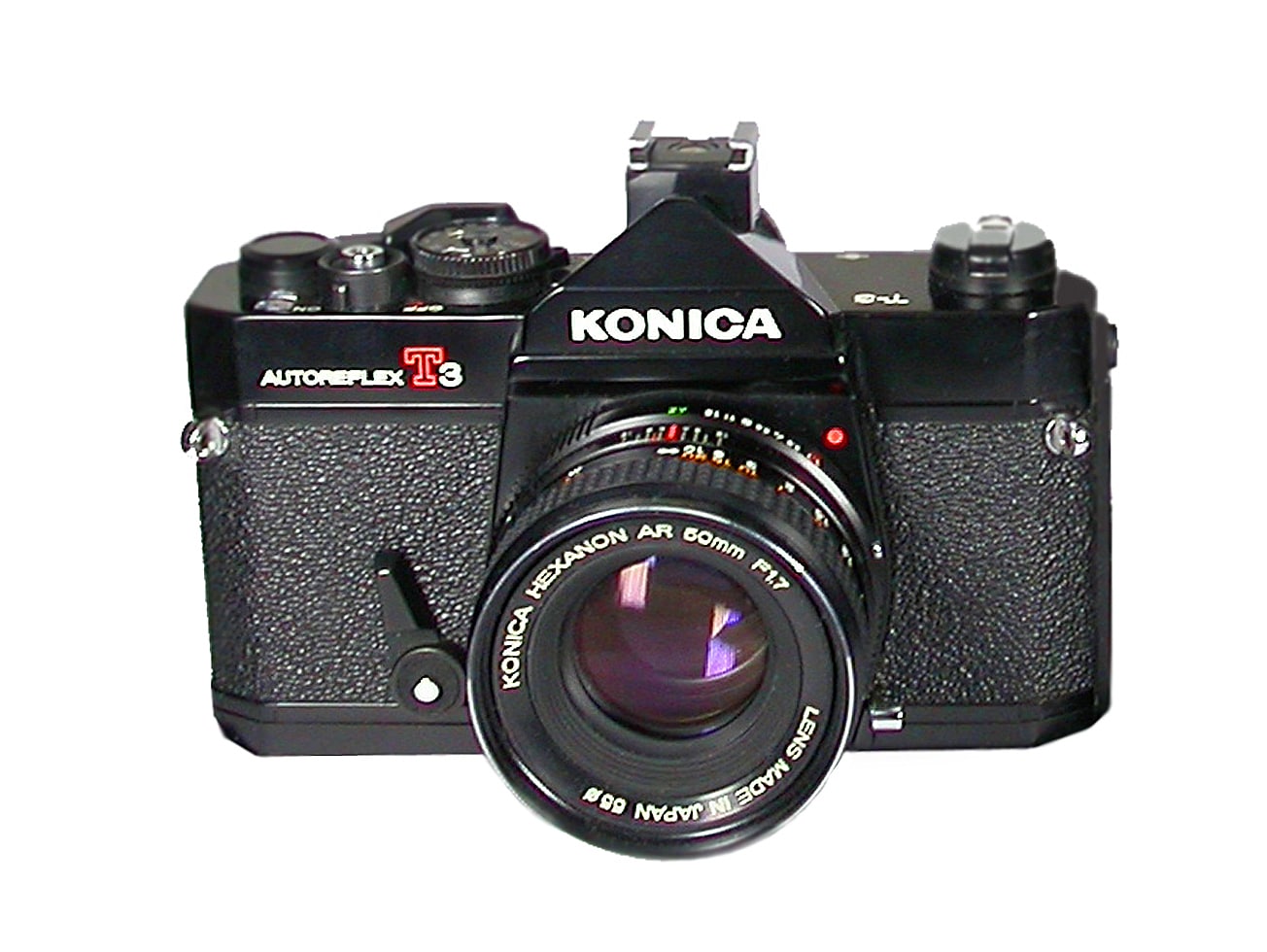 Mehrfachbelichtung: Durch einen Hebel neben dem Verschlusszeitenknopf kann der Filmtransport beim Spannen des Verschlusses gesperrt werden. Bei Mehrfachbelichtung erfolgt keine Weiterzählung des Filmzählwerkes. Wiederholte Betätigung des Mehrfachbelichtungshebels gestattet weitere Mehrfachbelichtung. X- und M-Blitzkontaktanschlüsse. Zubehörschuh mit X-Mittenkontakt. Sicherung gegen unbeabsichtigtes Öffnen der Rückwand. Stativgewinde. Filmmerktasche. Okkularverschluss gegen Belichtungsmessfehler bei Stativaufnahmen. Objektivanschluss: Konica AR-Bajonett, hier mit dem Konica Hexanon AR 1:1,7/50 mm. Batterie: 2 x Quecksilberzellen 1,35 Volt (PX 625).