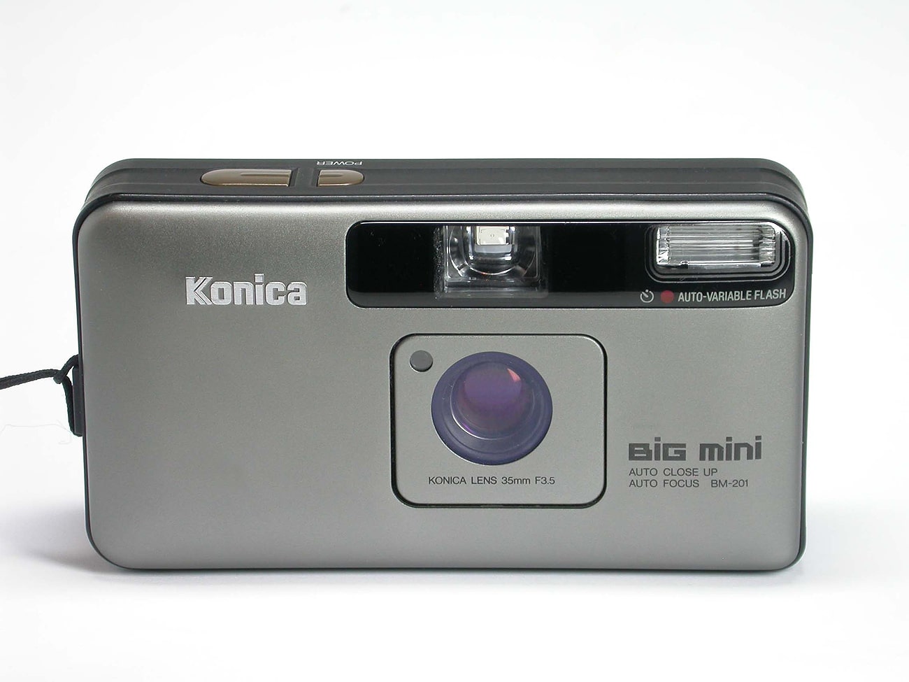 Kleinbildkamera aus Japan, 1990. Automatische Belichtungssteuerung, Filmempfindlichkeiten: DX-Kodierung ISO 25 bis 3.200, ansonsten automatisch ISO 25. Belichtungszeiten 3,6 Sekunden bis 1/500 Sekunde, Selbstauslöser, motorischer Filmtransport. Eingebauter Blitz, schaltet sich lichtabhängig automatisch zu, Blitzbelichtungskorrektur +- 1,5 Blendenstufen. Leuchtrahmensucher, eingeblendete Informationen: Parallaxmarken, AF-Bereich, Blitzbereitschaft, Makro. Objektiv: Konica Lens 1:3,5/35 mm (4 Linsen in 4 Gruppen), Autofokus 0,6 Meter bis unendlich, in Makrostellung 0,3 bis 0,6 Meter, in Ruhestellung ist das Objektiv in das Gehäuse zurückgefahren. Diese Kamera ist mit einer Datenrückwand zur Einbelichtung von Datumsangaben ausgerüstet. Stromversorgung: 1 x 3-Volt-Lithiumbatterie (CR 123 A oder DL 123 A).