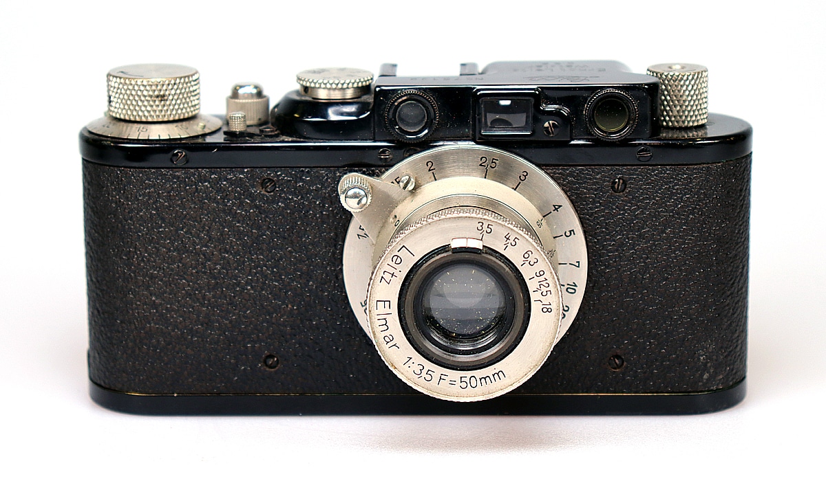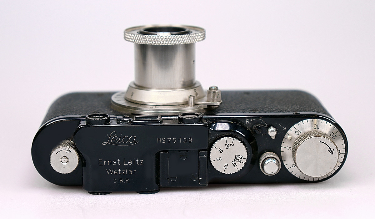 Messsucherkamera (1932-1948) für den Kleinbildfilm 135 (Aufnahmeformat 24 x 36 mm) – die erste Leica mit eingebautem Entfernungsmesser, gebaut in 52.500 Exemplaren. Dieses Museumsexemplar in schwarz stammt ausweislich der Seriennummer aus dem Jahre 1932. Manuelle Scharfeinstellung, mechanischer Schlitzverschluss (Z = Zeit sowie 1/20 bis 1/500 Sekunde), manuelle Belichtungssteuerung. Wechselobjektive: M-39-Gewinde; hier mit dem Normalobjektiv Leitz Elmar 1:3,5/50 mm. Sechs Elemente in drei Gruppen, kürzeste Einstellentfernung: 1 Meter, kleinste Blende: 18. Kamera in der Ausführung wie die Standard Leica, jedoch mit eingebautem und mit dem Objektiv gekuppeltem Entfernungsmesser. Durch das Messen der Entfernung wird zugleich die Optik scharf gestellt.