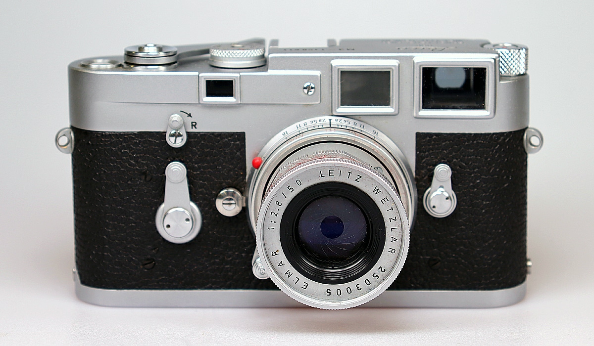 Legendäre Messsucherkamera (1954-1968) für den Kleinbildfilm 135 (Aufnahmeformat 24 x 36 mm). Manuelle Schärfeeinstellung, mechanischer Schlitzverschluss (B, 1-1/1.000 Sekunde), Vorlaufwerk, manuelle Belichtungssteuerung. Objektivanschluss: Leica M-Bajonett, hier mit Summicron 1:2,0/35 mm. Kamera gebaut in 226.000 Stück. Erste Leica mit Schnellaufzugshebel, hier noch mit Zweifachschwung (Double Stroke). Leuchtrahmensucher mit Parallaxenausgleich, abhängig von der Objektivbrennweite Einspiegelung von Sucherrahmen für 50, 90 und 135 mm Brennweite. Für 35 mm wird ein Suchervorsatz benötigt. Aufsetzbarer Belichtungsmesser mit Verschlusskupplung.