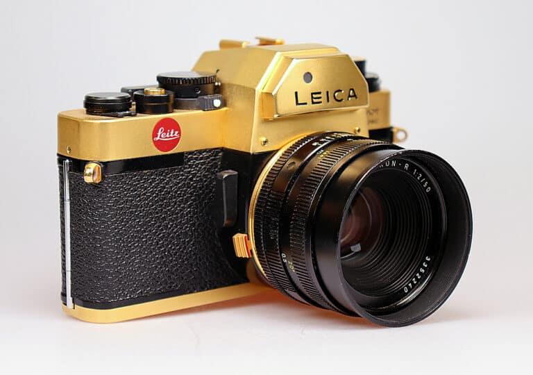 Als wir aus der AGFA-Spende Dieter Schade diese toll aussehende Leica R3 Mot electronic in GOLD erhalten haben standen wir vor einem Rätsel bei der Einordnung. Wir fanden nämlich im ganzen Internet nichts darüber. Es gibt dort viele Fotos einer R3 GOLD mit dem geschwungenen Leica-Schriftzug (Sonder-Edition Oskar Barnack), aber nichts mit einer vergoldeten R3 mit dem „eckigen“ LEICA-Schriftzug. Die Seriennummer ist 1 497 811 = Baujahr 1978, Portugal. Weiß jemand mehr über dieses Modell? Ein Einzelstück? Wurde die Kamera nachträglich vergoldet? Sieht jedenfalls alles sehr professionell aus. Hinweise bitte per E-Mail an uns: info@kameramuseum.de. Dieter Schade selbst weiß auch nicht mehr. Nur, dass er sie so gekauft hat.
