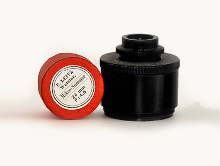 Scheinbar „nur“ eine Linse für die Mikroskopie, aber von großer Bedeutung für die Entwicklung der Kleinbildfotografie: das Mikro-Summar. Das Summar ist ein Linsenkonstruktion mit sechs Linsen in vier Gruppen. Bekannt ist der Name durch das lichtstarke Summar 1:2,0/50 mm für die Schraub-Leica. Die hohe Qualität des Objektivs für die Mikroskopie spiegelt sich auch in dessen langer Bauzeit wider (1902 bis 1984).