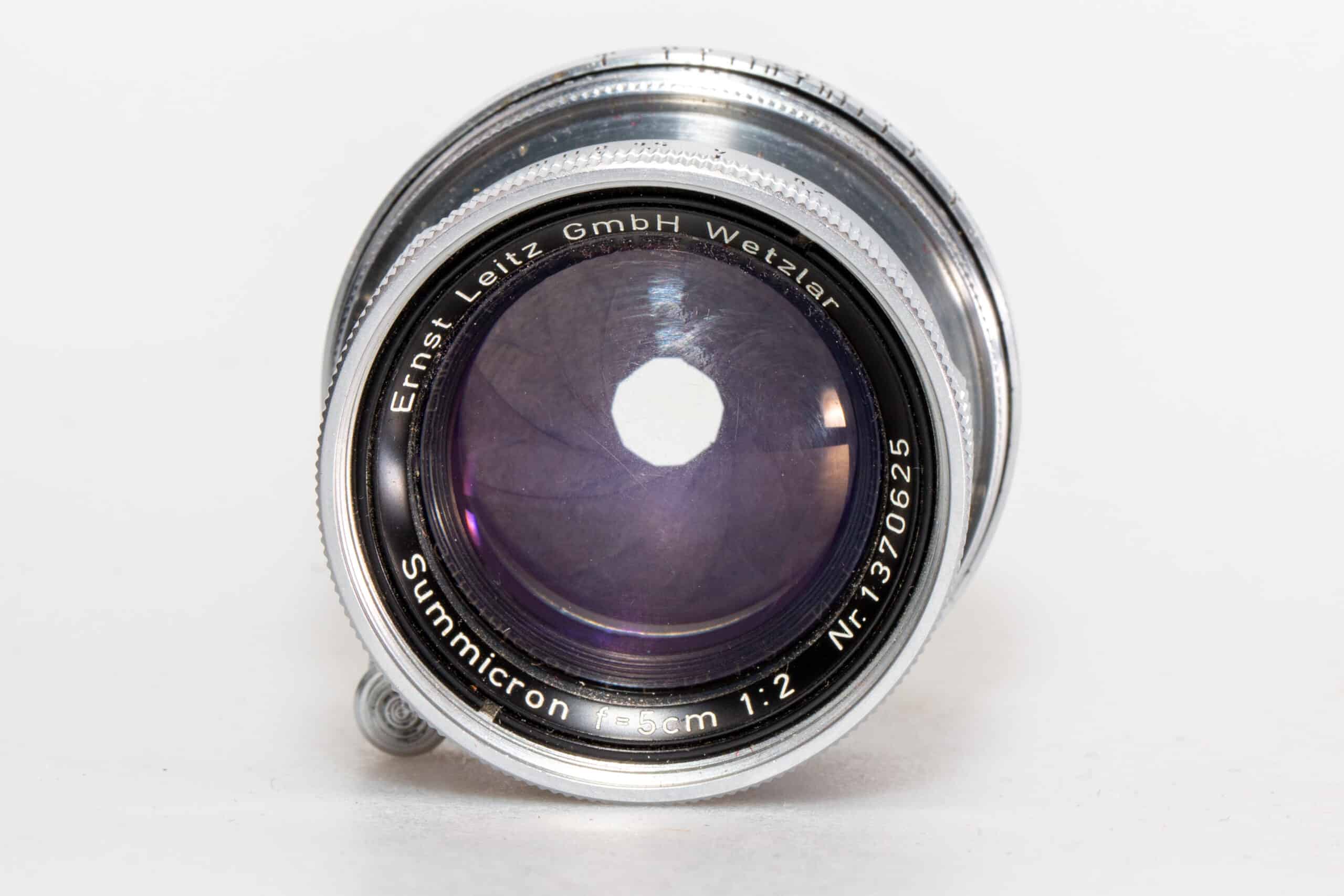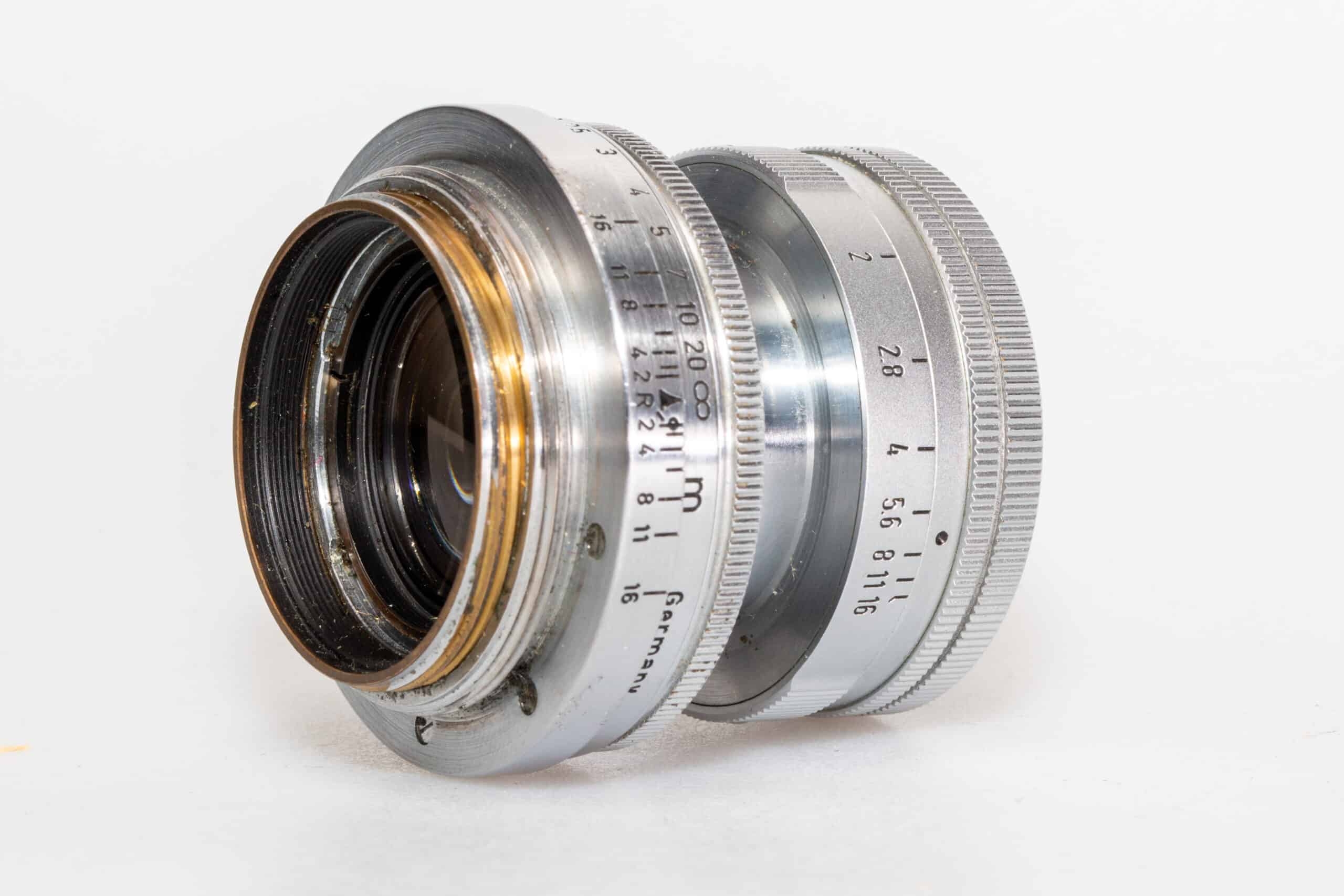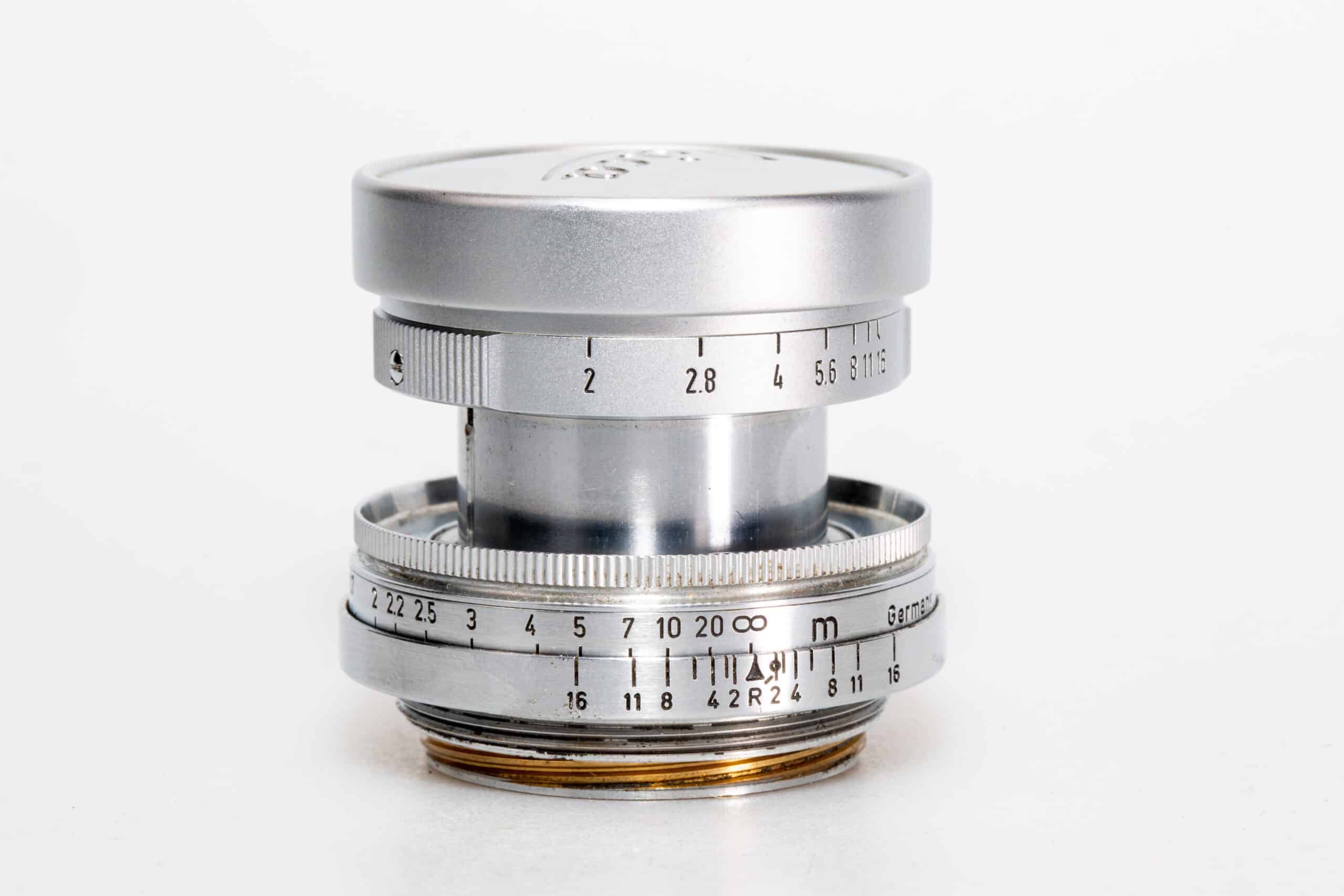 Für alle Kameras mit Leica-Gewindeanschluss M 39, manuelle Schärfeeinstellung. Standardobjektiv für das Kleinbildformat. Kleinste Blende: 16, Bildwinkel: 27° (kurze Seite), 39,6° (lange Seite), 46,8° (Diagonale); 7 Elemente in 5 Gruppen, kürzeste Einstellentfernung: 1 m, Filter: 39 mm. Exemplar stammt ausweislich der Seriennummer von 1956.