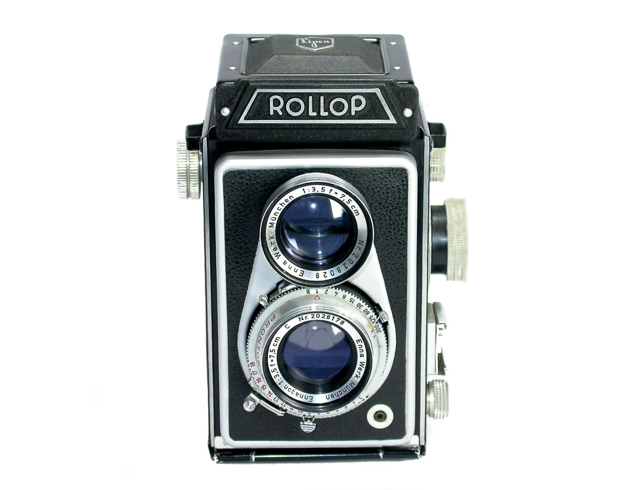 Seltene deutsche zweiäugige Spiegelreflexkamera für drei Formate: Wahlweise 12 Bilder im Negativformat 6 x 6 cm, oder (mit Einlegemaske) 16 Aufnahmen 4 x 4 cm (auf Rollfilm 120) oder bis zu 36 Bilder auf Kleinbildfilm 135 – theoretisch auch Kleinbildformat 24 x 36 mm (Hochformat) auf Rollfilm 120. Alu-Spritzgussgehäuse aus dem Hause Lipca (Lippische Camerafabrik, Richter & Fischer GmbH, Barntrup), etwa 1954. Aufnahme- und Sucherobjektiv (Doppelparallelführung): 1:3,5/7,5 cm (Enna Werk München), Aufnahmeobjektiv: Ennagon, Seriennummer: 2028028, Seriennummer des Aufnahmeobjektivs: 2028178. Verschluss: Prontor-SVS (B, 1 bis 1/300 Sekunde), Selbstauslöser, Drahtauslöseranschluss, Stativgewinde, Sucherlupe, Blitzsynchronisation, seitlicher Zubehörschuh. Schärfeverstellung per Rändelradad (im Bild), Filmtransport per Rad (auf der anderen Gehäuseseite). Preis 1954: 145,- DM.
